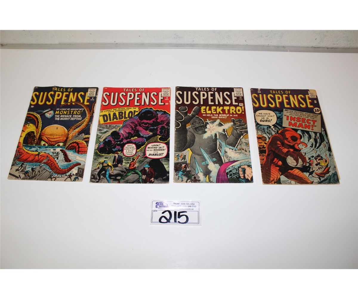 TALES OF SUSPENSE #8, 9, 13 & 24 (1960-61) # 9 - IRON MAN PROTOTYPE. 4 CLASSIC MARVEL PRE-HERO COPIES. LOW TO MID GRADE AVERAGE, COVERS ATTACHED, NICE & SOLID RUN.