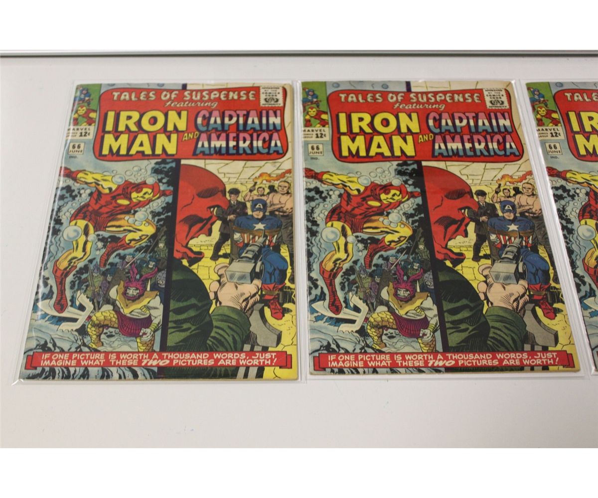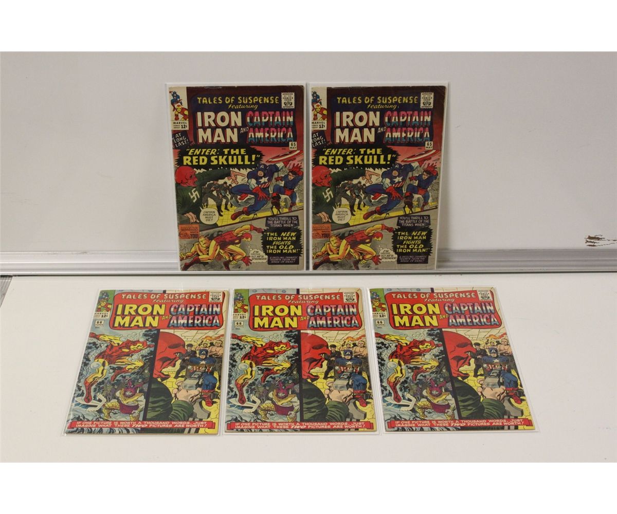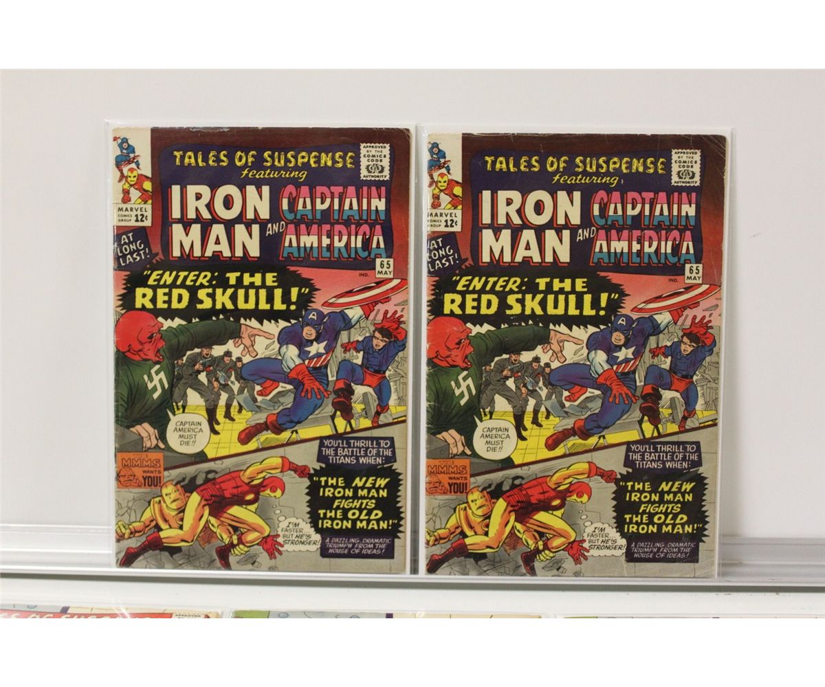 TALES OF SUSPENSE & RED SKULL GROUP LOT:  2 COPIES #65 - 1ST APPEARANCE OF SILVER AGE RED SKULL & 3 COPIES OF #66 - ORIGIN OF RED SKULL (1965) NO CHIPPING, ALL COVERS & CENTRE FOLDS FIRMLY ATTACHED (MID GRADE AVERAGE)-(MID GRADE AVERAGE) GLOSSY & SUPPLE, NICE, SOLID COPIES 2013 OVERSTREET GUIDE VALUE AT 9.2 (NM-) $2300