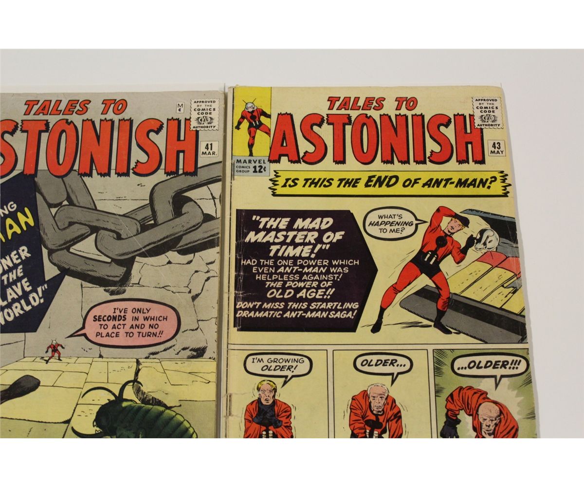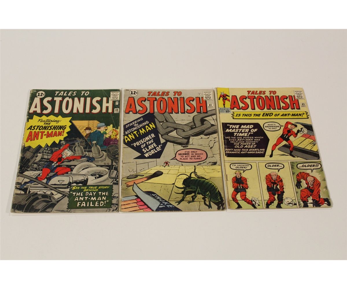 TALES TO ASTONISH #40, 41 & 43 (1963) 3 EARLY ANT-MAN ISSUES. LOW TO LOWER MID GRADE, STRUCTURALLY SOUND COPIES COVER & CF ATTACHED, NO PIECES OUT, COMPLETE. SOLID BOOKS.