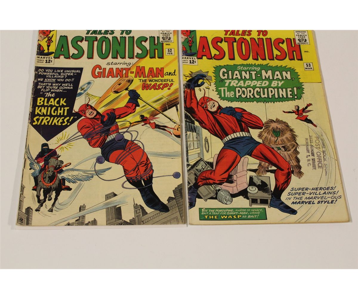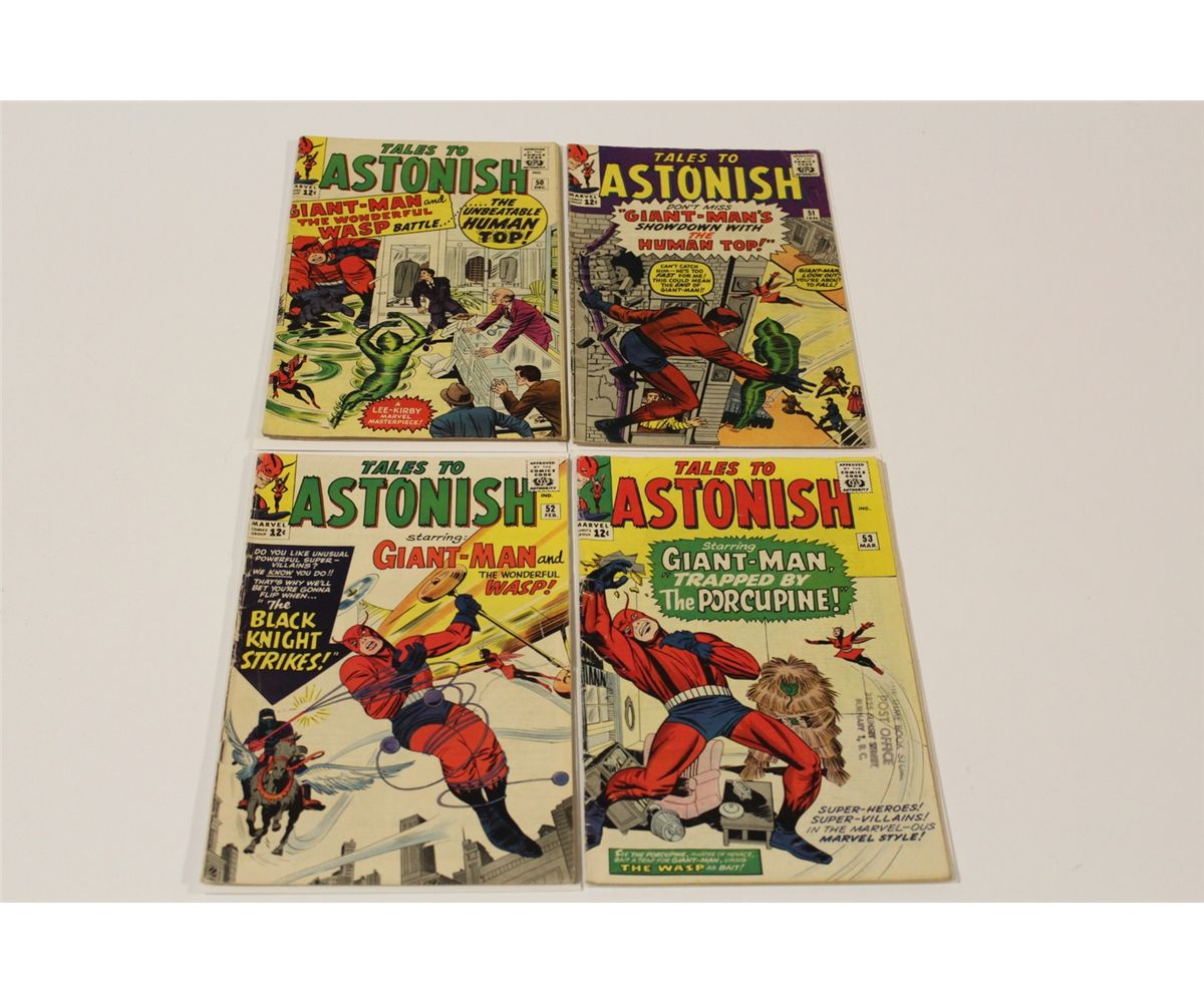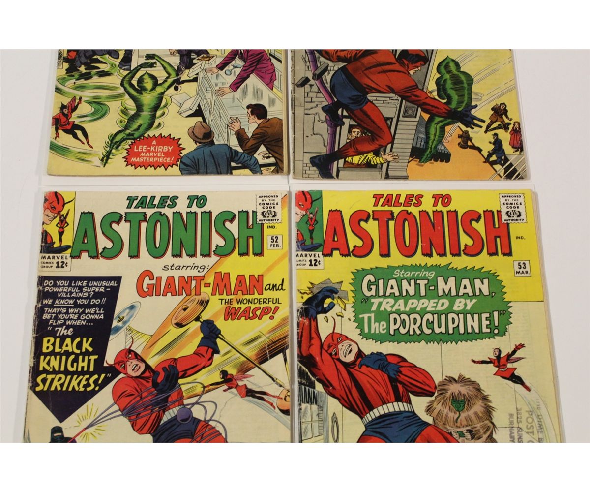 TALES TO ASTONISH #50-53 (1963-64) 4 EARLY GIANT MAN ISSUES. #52 - ORIGIN & 1ST APP. BLACK KNIGHT. LOWER MID TO MID GRADE AVERAGE, GLOSSY, TIGHT & SUPPLE. NICE BOOKS.