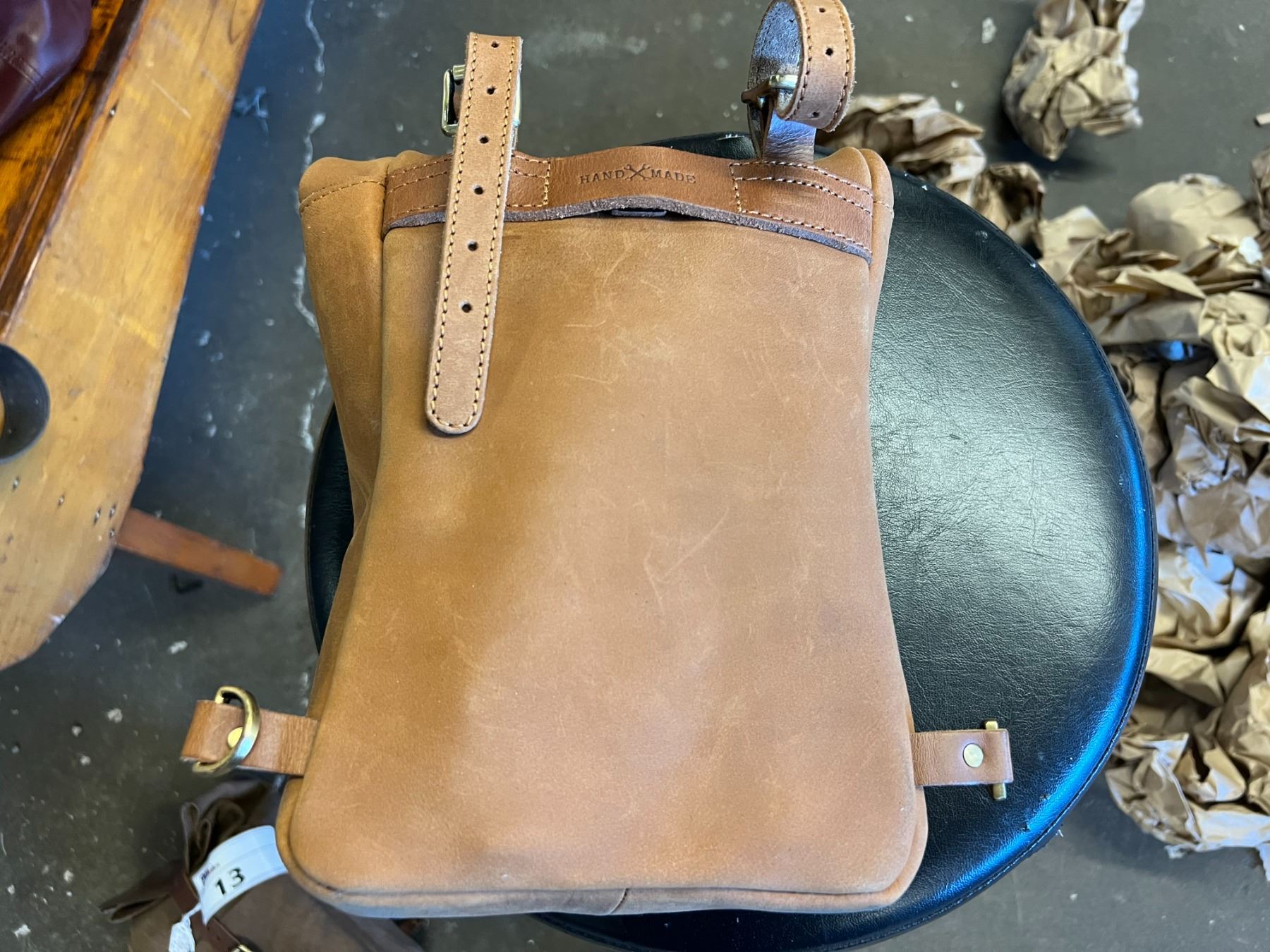 TAN LEATHER MINI PANNIER (ATTACHABLE TO BACK PACK) 11"H X 4"W X 7.5"