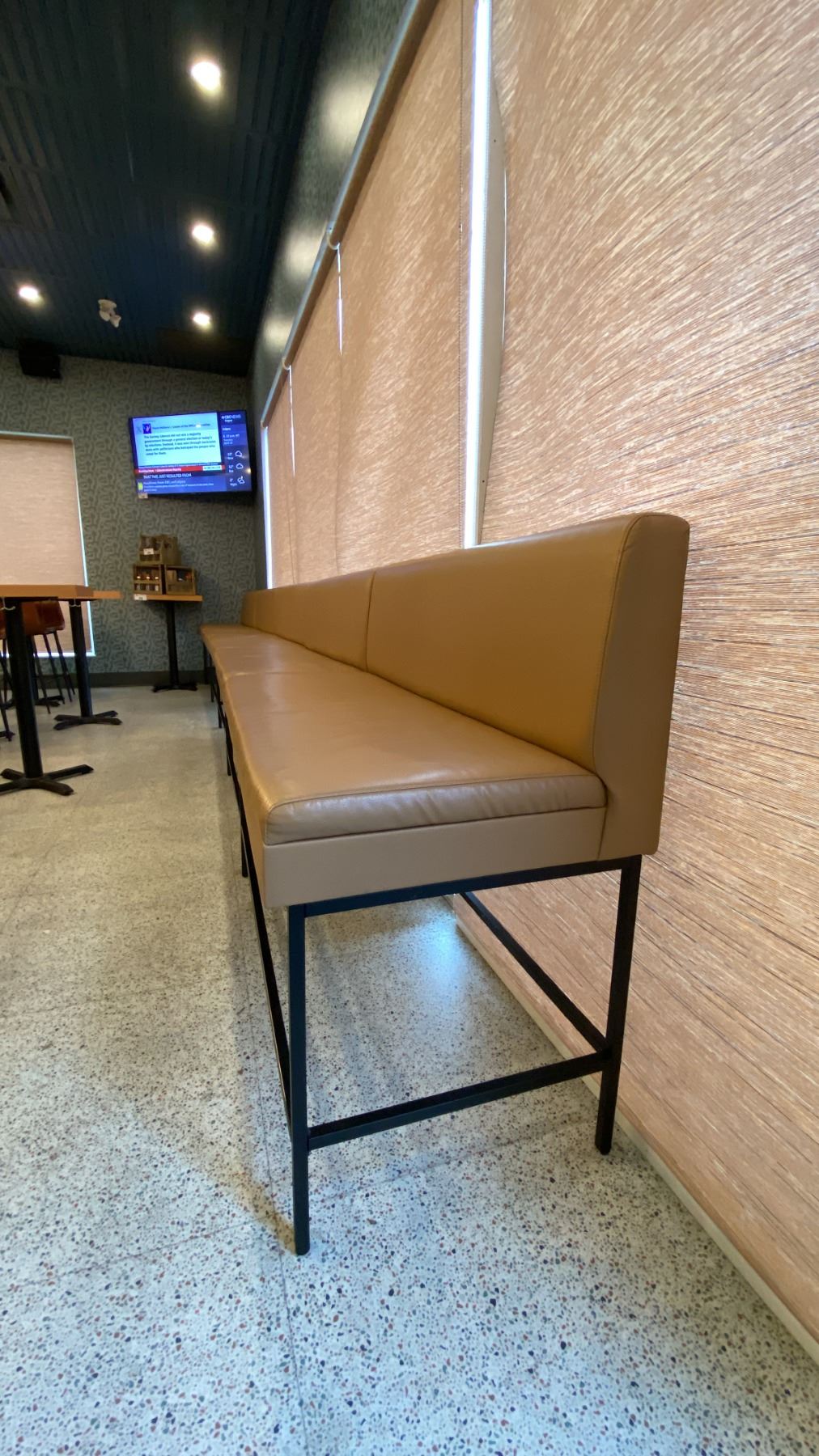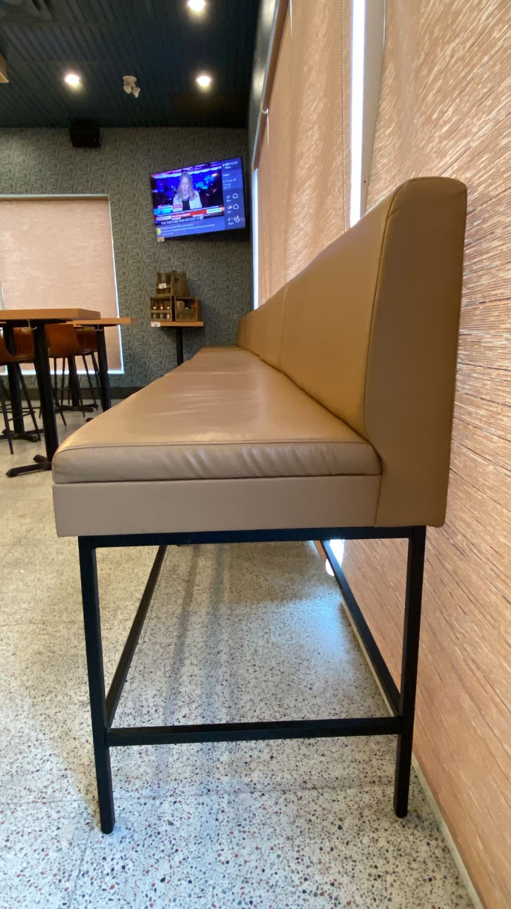 TAN LEATHER WITH BLACK METAL BASE BOOTH SEATING - (5) 4FT SECTIONS