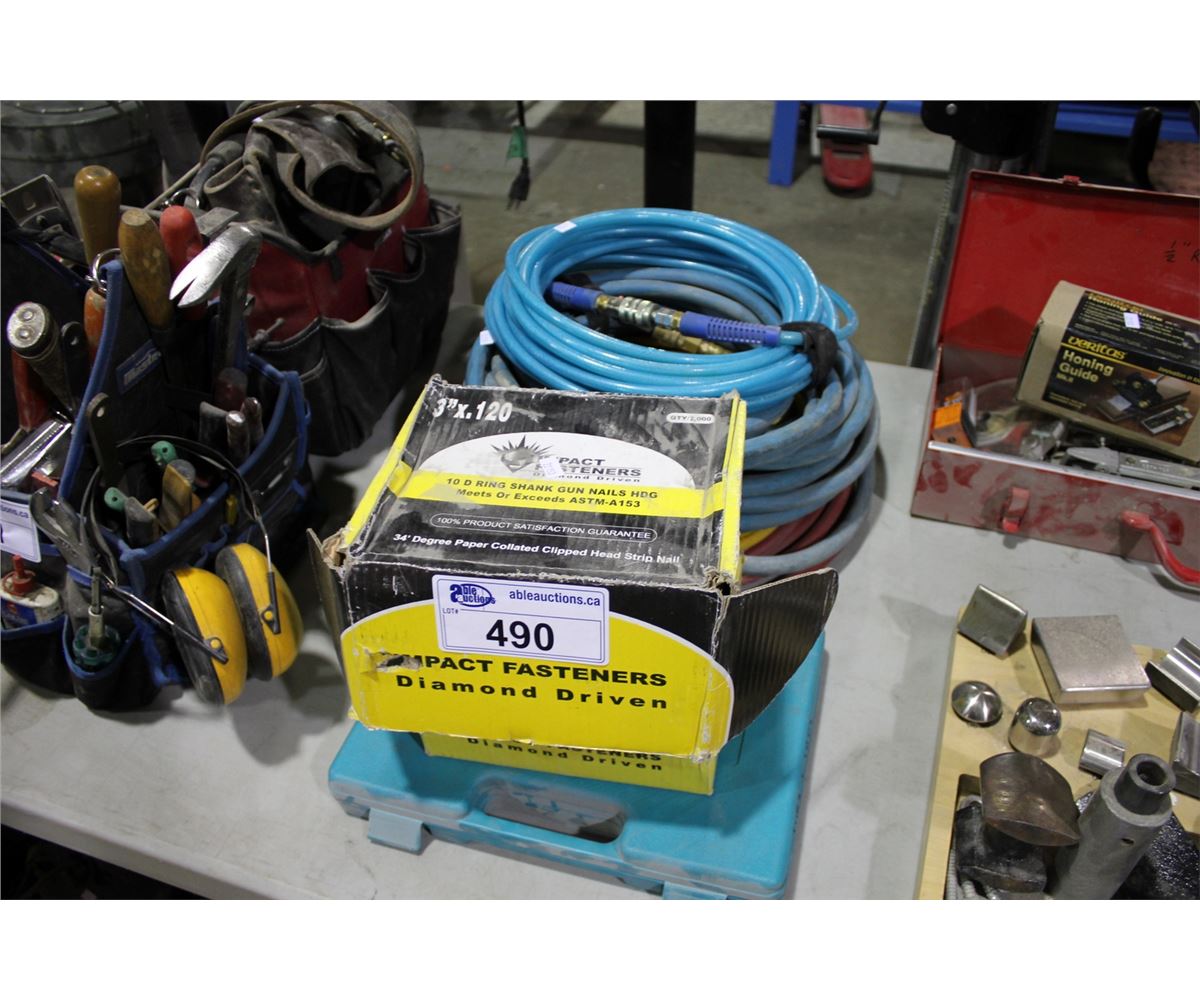 TAP AND DIE KIT, NAIL GUN NAILS AND AIR HOSE
