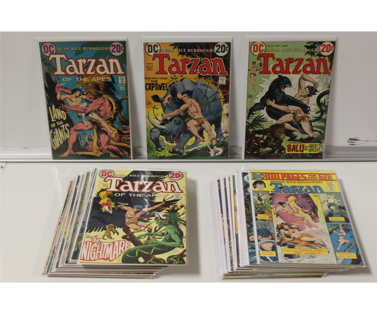 TARZAN (DC) HIGH GRADE BRONZE RUN.  A GORGEOUS RUN, LOTS OF COPIES IN THE VF/NM TO NM RANGE.  GLOSSY, RAZOR SHARP & SUPPLE. INCLUDES 3 BEAUTIFUL 100 PAGE SQUARE BOUNDS, 29 DIFFERENT ISSUES BETWEEN #211-246 (1972-76).