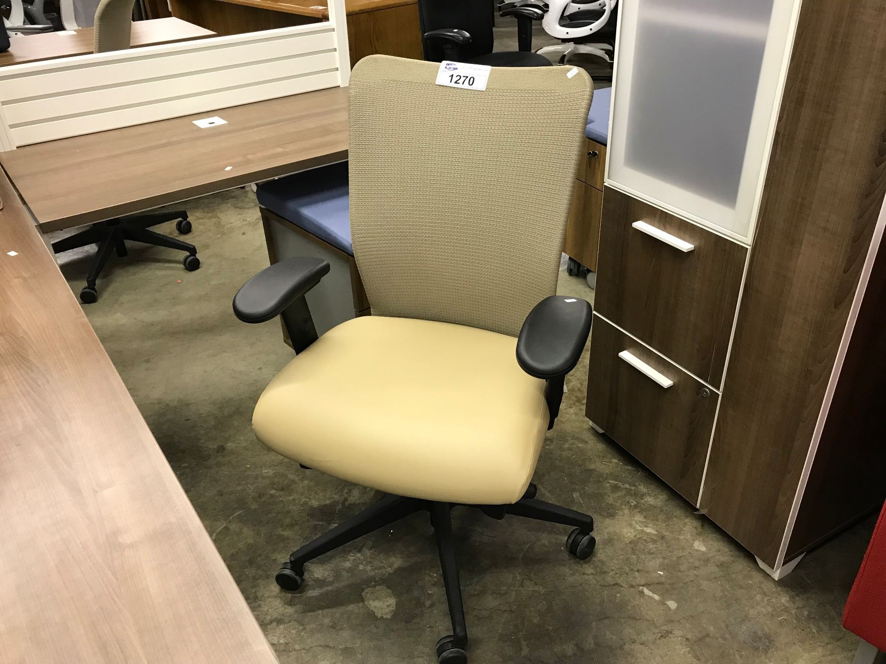 TAUPE KIMBALL MESH BACK FULLY ADJUSTABLE HI BACK TASK CHAIR WITH MATCHING PADDED MOBILE 2 DRAWER PEDESTAL
