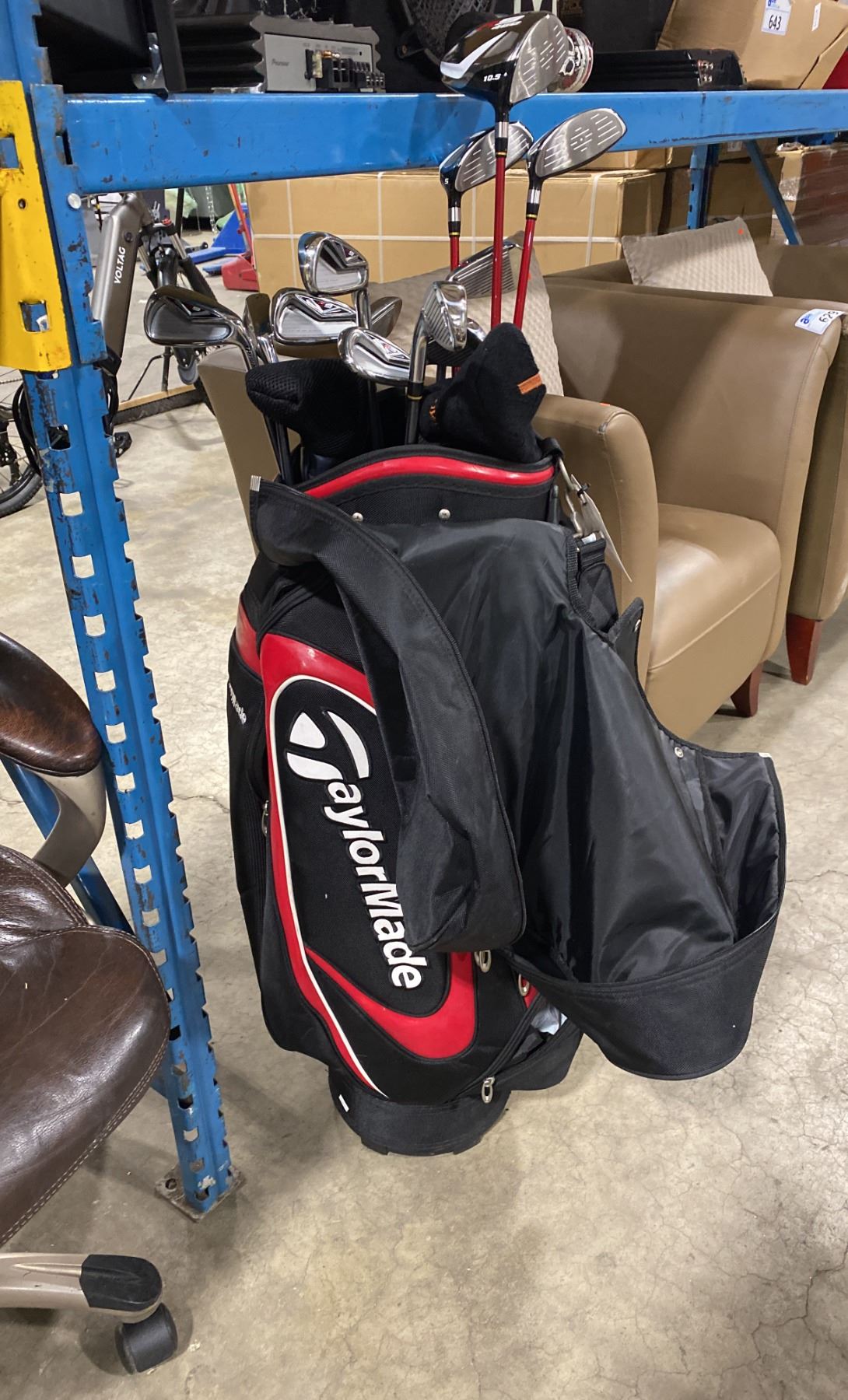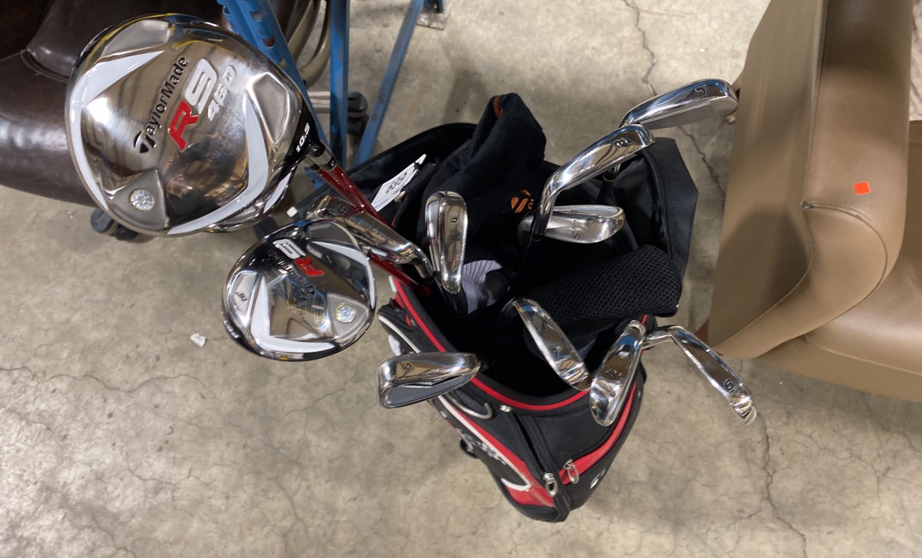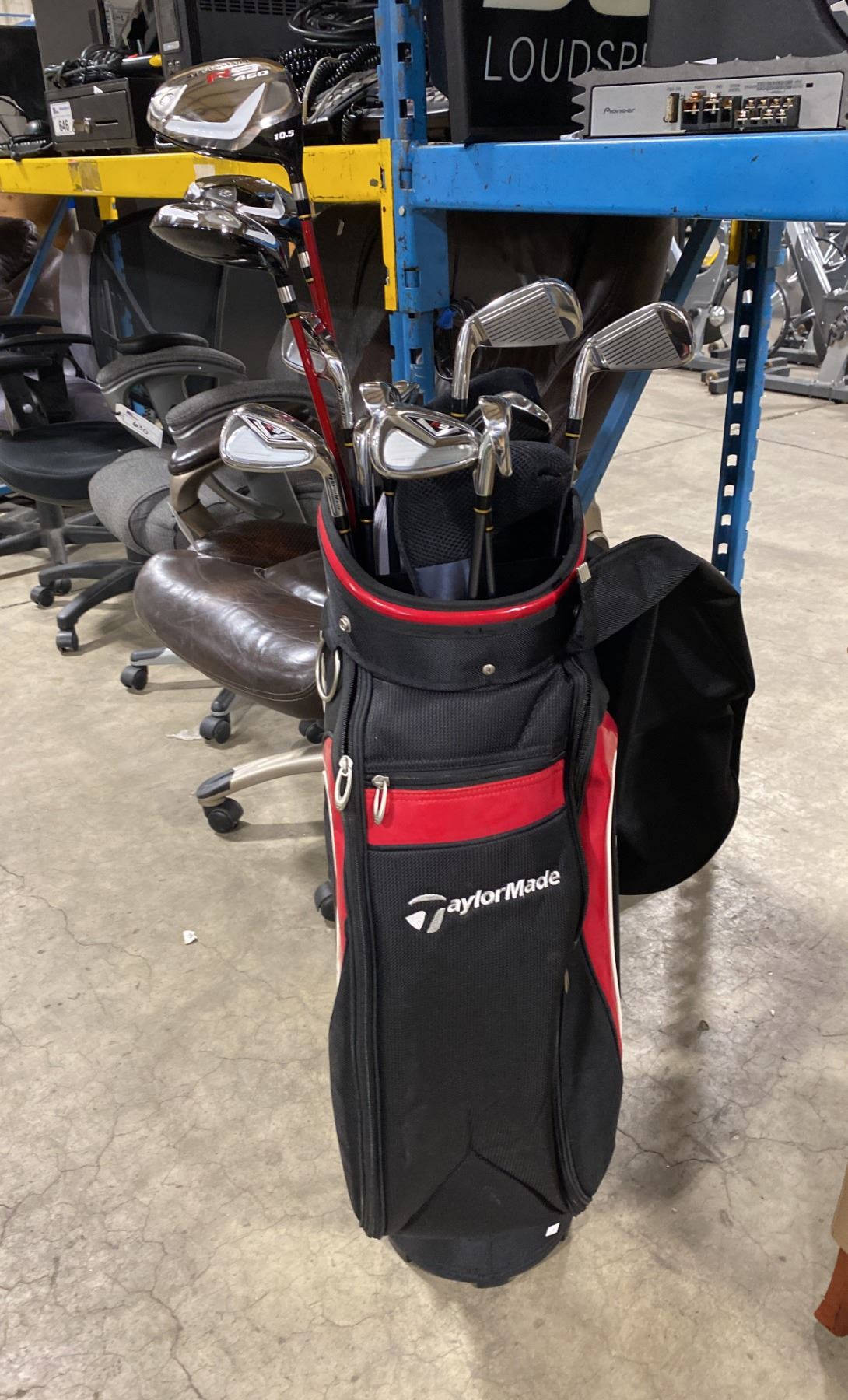 TAYLORMADE R 11 RED / BLACK GOLF BAG WITH 13 ASSORTED GOLF CLUBS