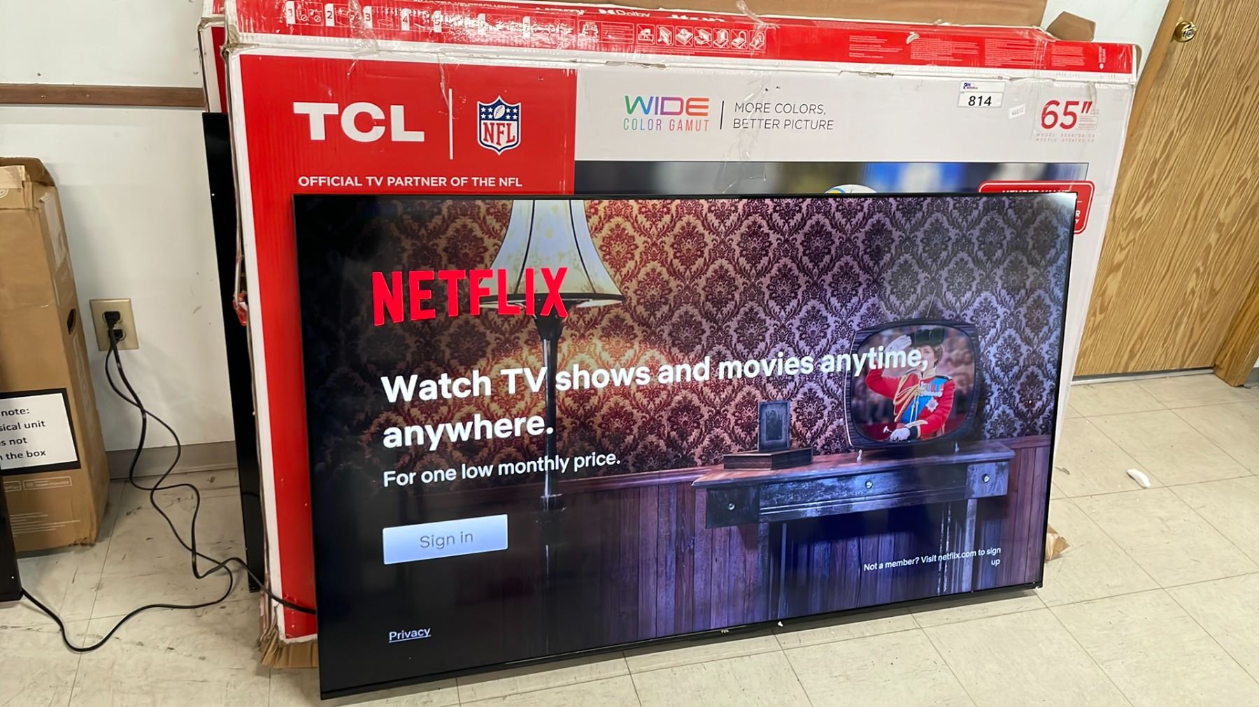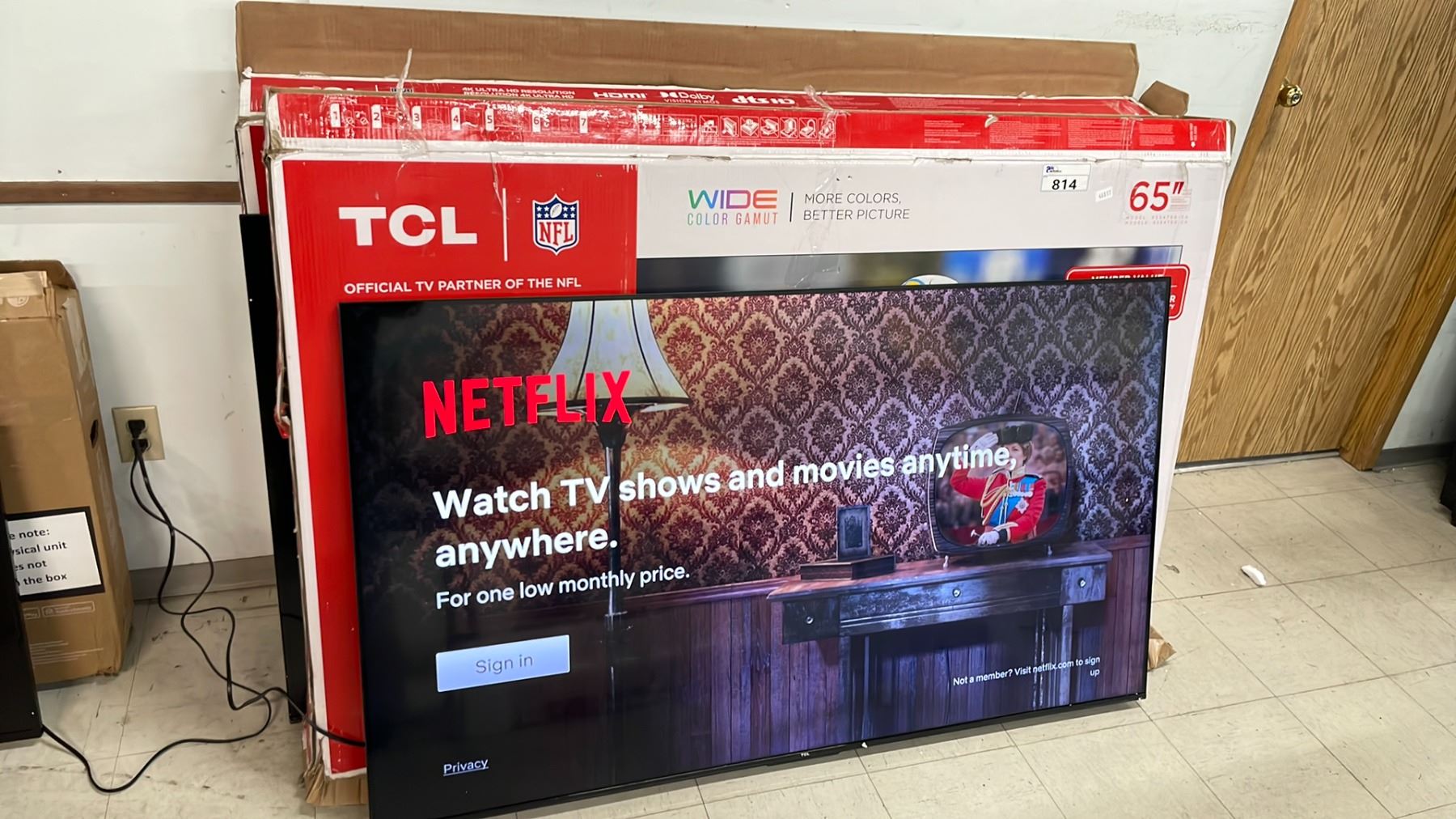 TCL 65S470G-CA 65" 4K ULTRA HD RESOLUTION TELEVISION WITH REMOTE & BOX * NO POWER CORD/ NO LEGS/ DEAD PIXEL LINE *