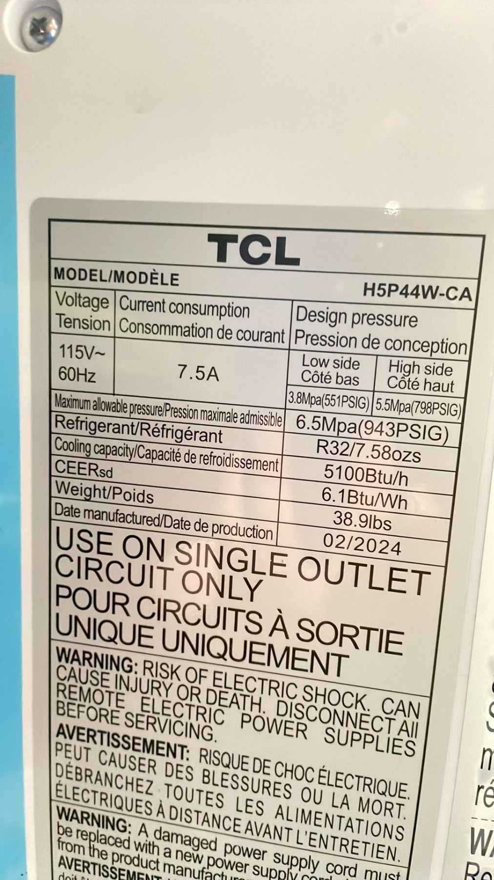 TCL 8500 BTU SMART PORTABLE AIR CONDITIONER (NO HOSE, NO REMOTE)