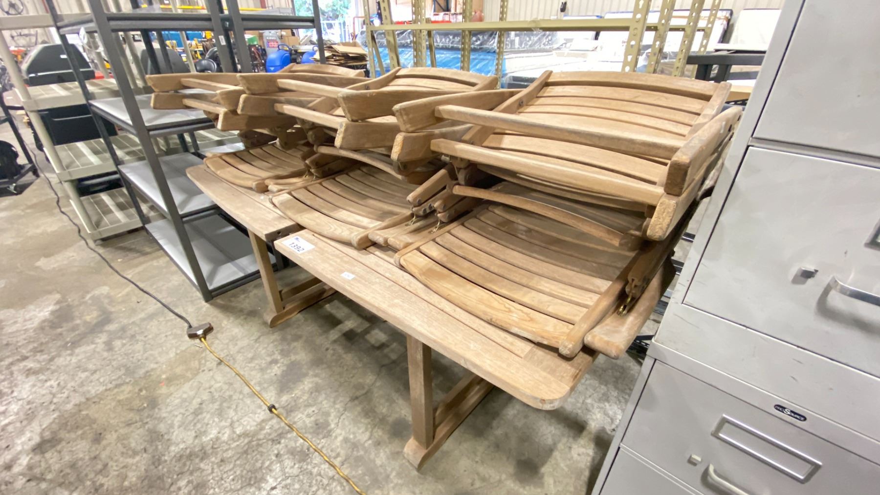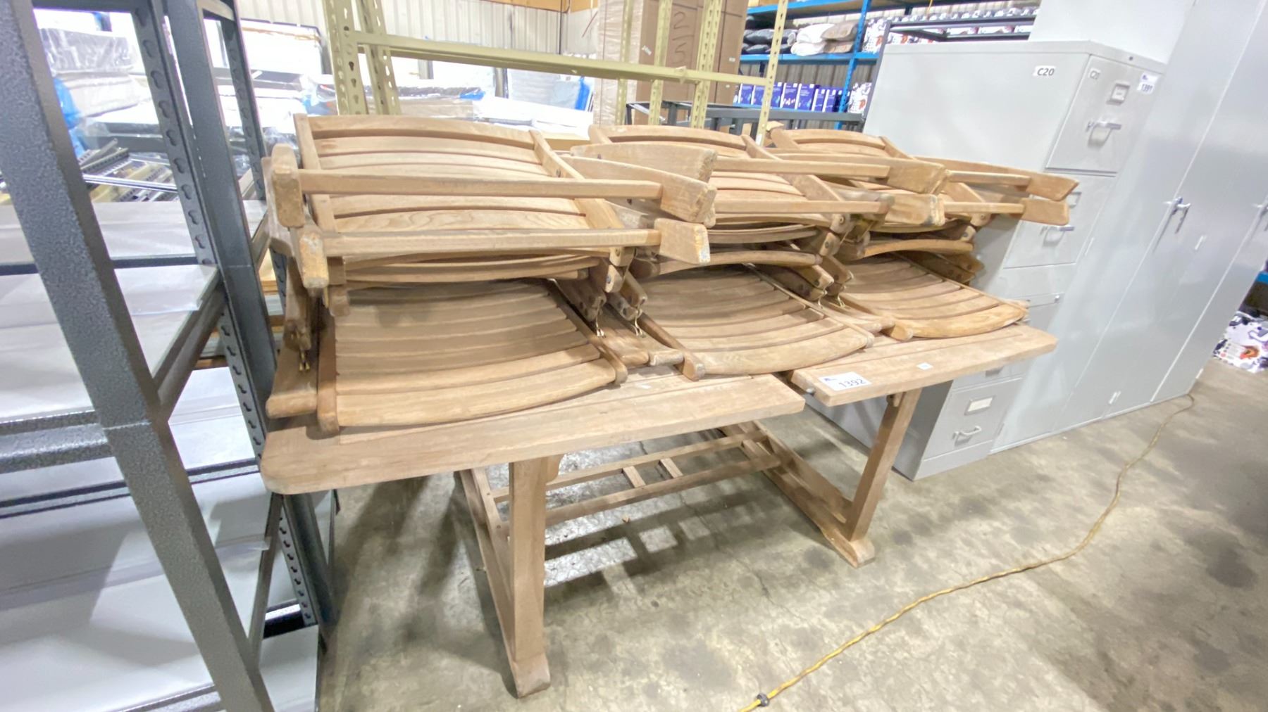 TEAK 7 PCS RECTANGULAR OUTDOOR PATIO TABLE & CHAIR SET INCLUDING: TABLE WITH LEAF & 6 FOLDING CHAIRS