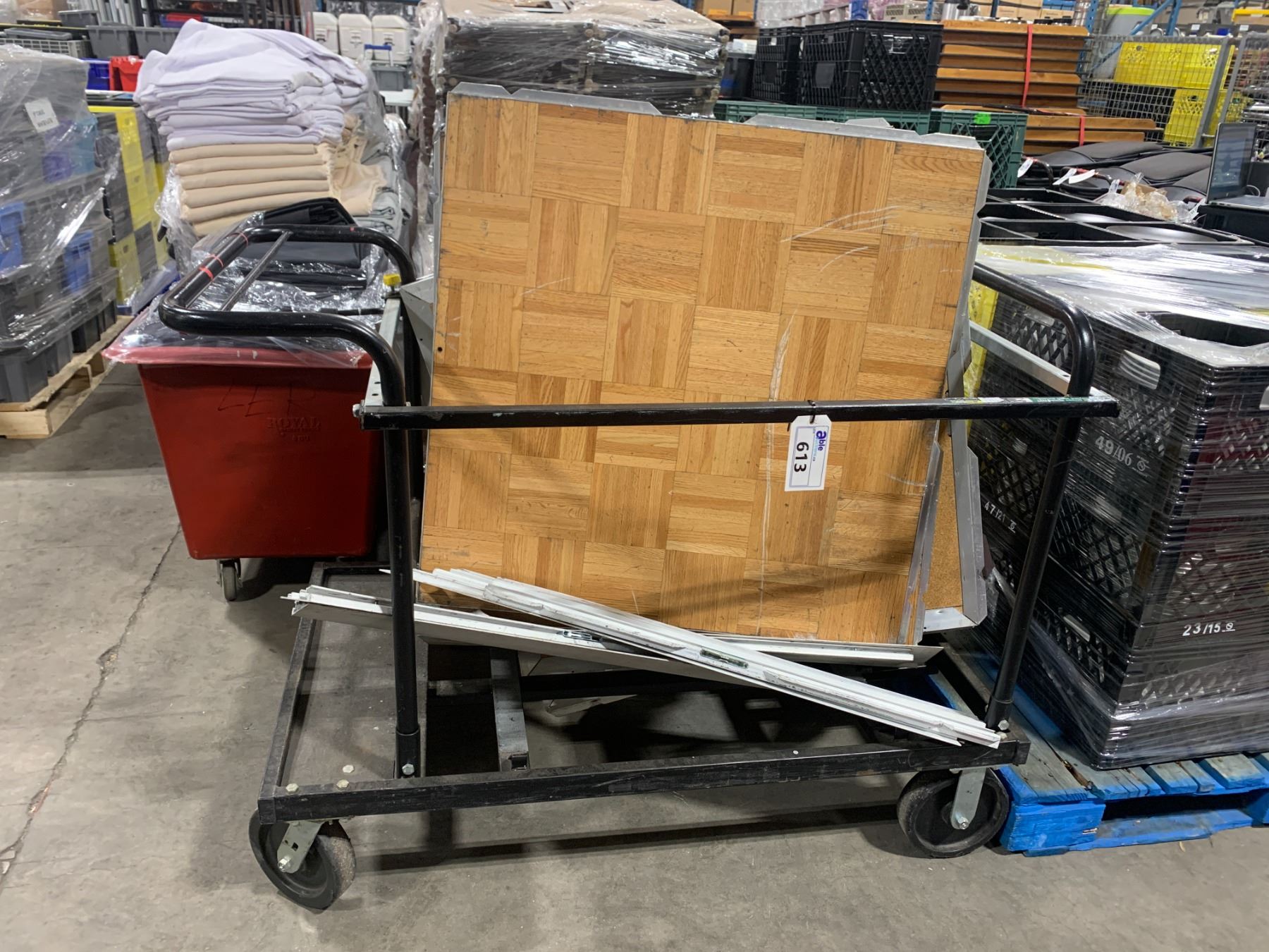 TEAK INTERLOCKING DANCE FLOOR PANELS ON MOBILE CART *CART INCLUDED*
