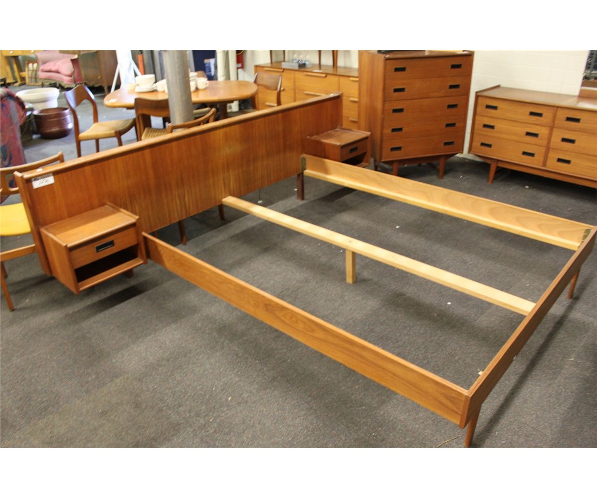 TEAK QUEEN HEADBOARD AND 2 SIDE TABLES
