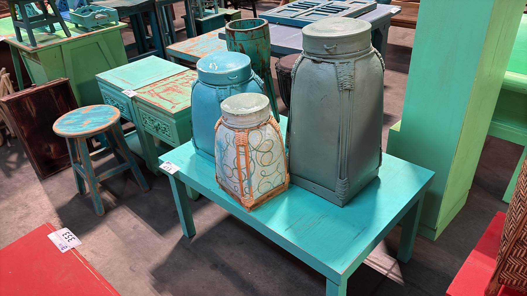TEAL 40" X 26" COFFEE TABLE AND MISC DECOR