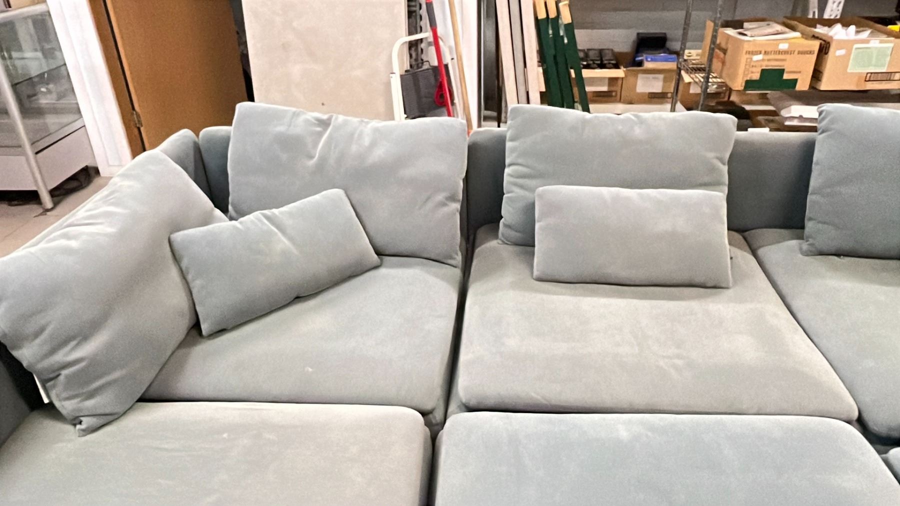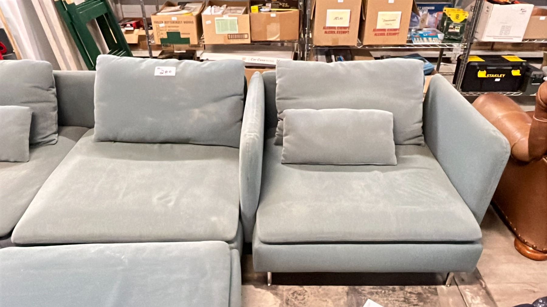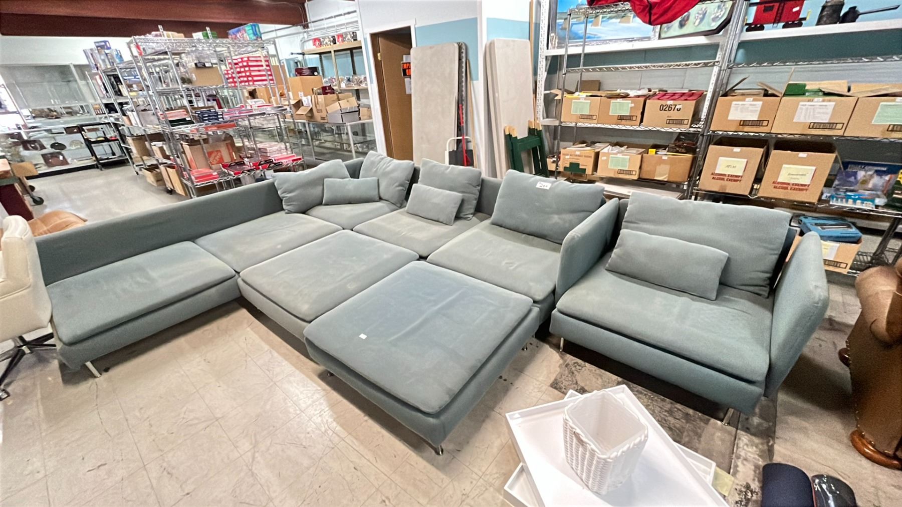 TEAL COUCH - APPROX. 13'W X 9.5'D X 28"H