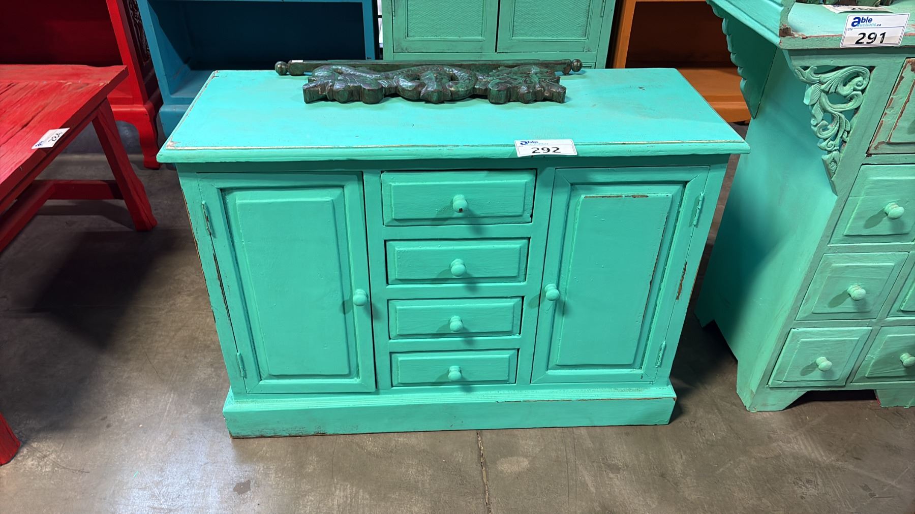 TEAL EXOTIC WOOD DRESSER 40 X 28"