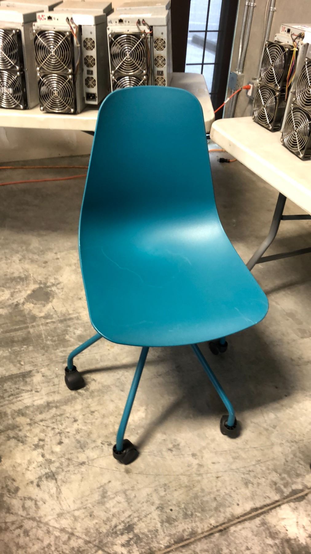 TEAL ROLLING PLASTIC OFFICE CHAIR