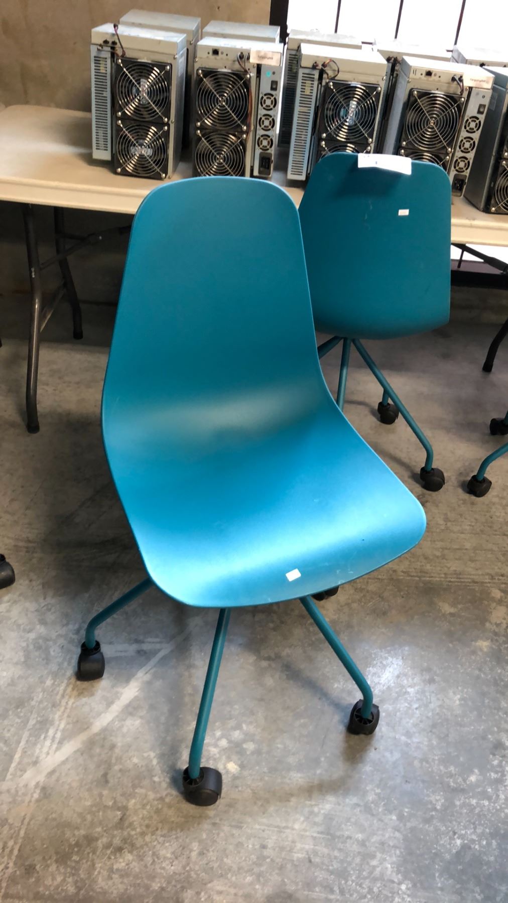 TEAL ROLLING PLASTIC OFFICE CHAIR