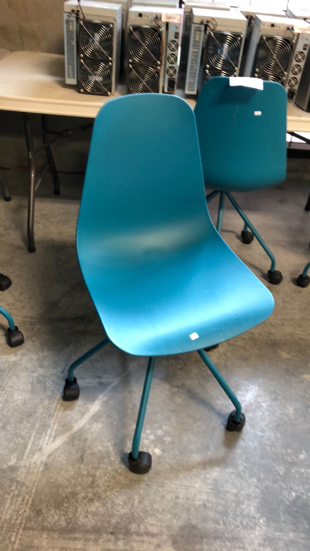 TEAL ROLLING PLASTIC OFFICE CHAIR