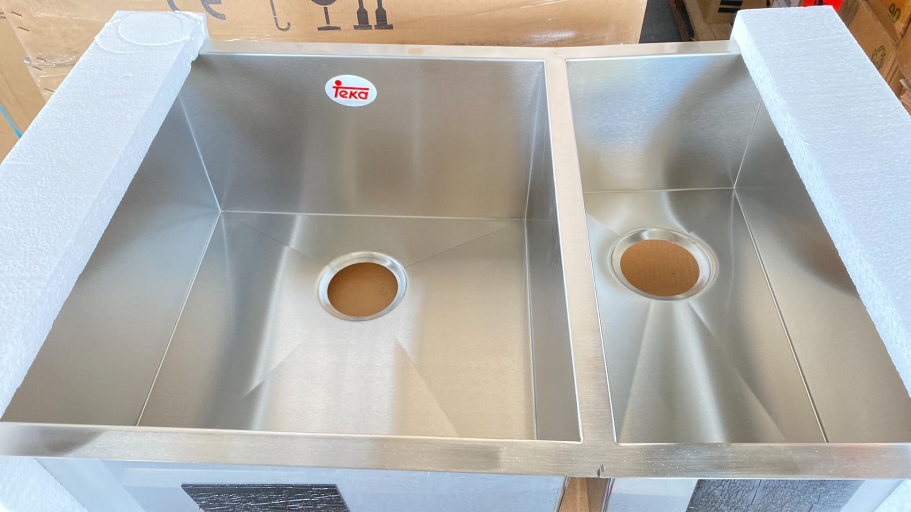 TEKA 088254 DOUBLE SQUARE BASIN, 17 GAUGE STAINLESS STEEL, UNDERMOUNT 29"X 20"