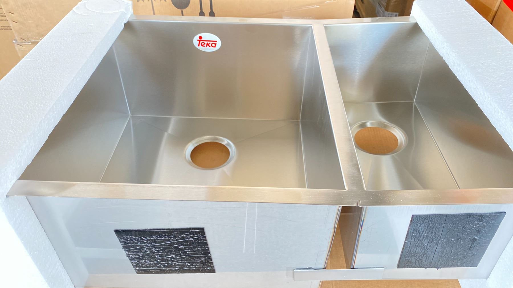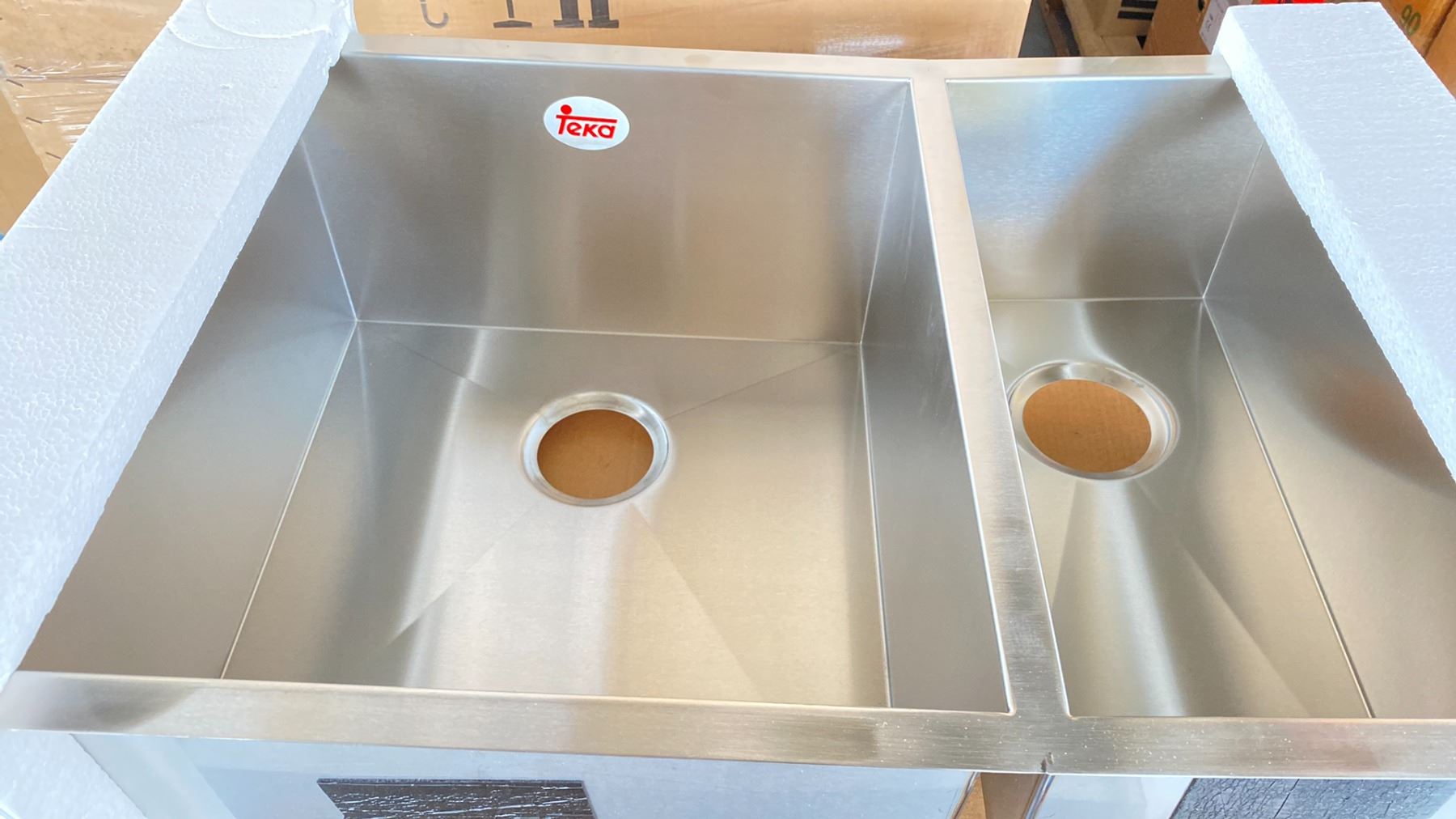 TEKA 088254 DOUBLE SQUARE BASIN, 17 GAUGE STAINLESS STEEL, UNDERMOUNT 29"X 20"