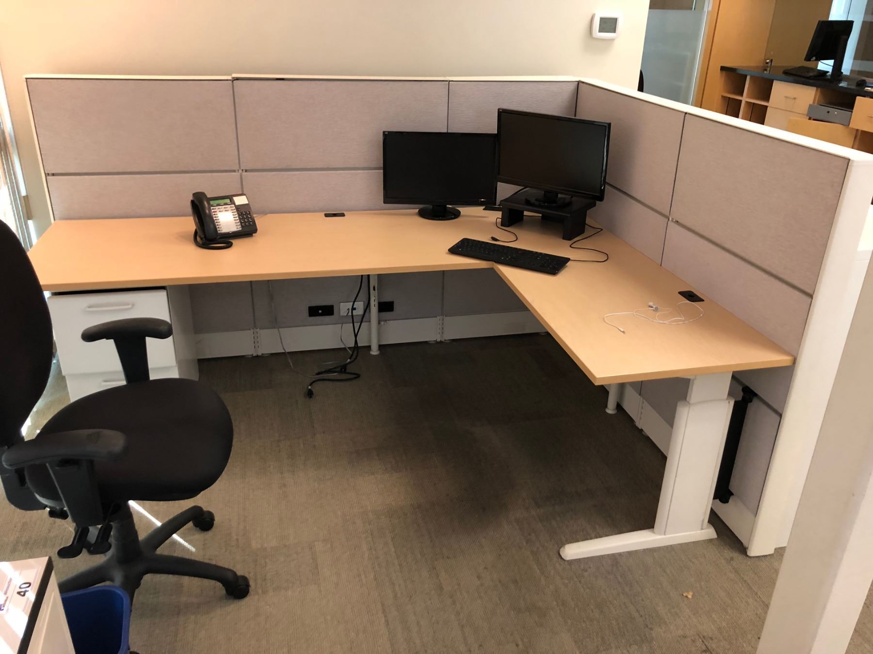 TEKNION 1 PERSON OFFICE CUBICLE STATION WITH MAPLE WORK SURFACES AND FILE PEDESTALS