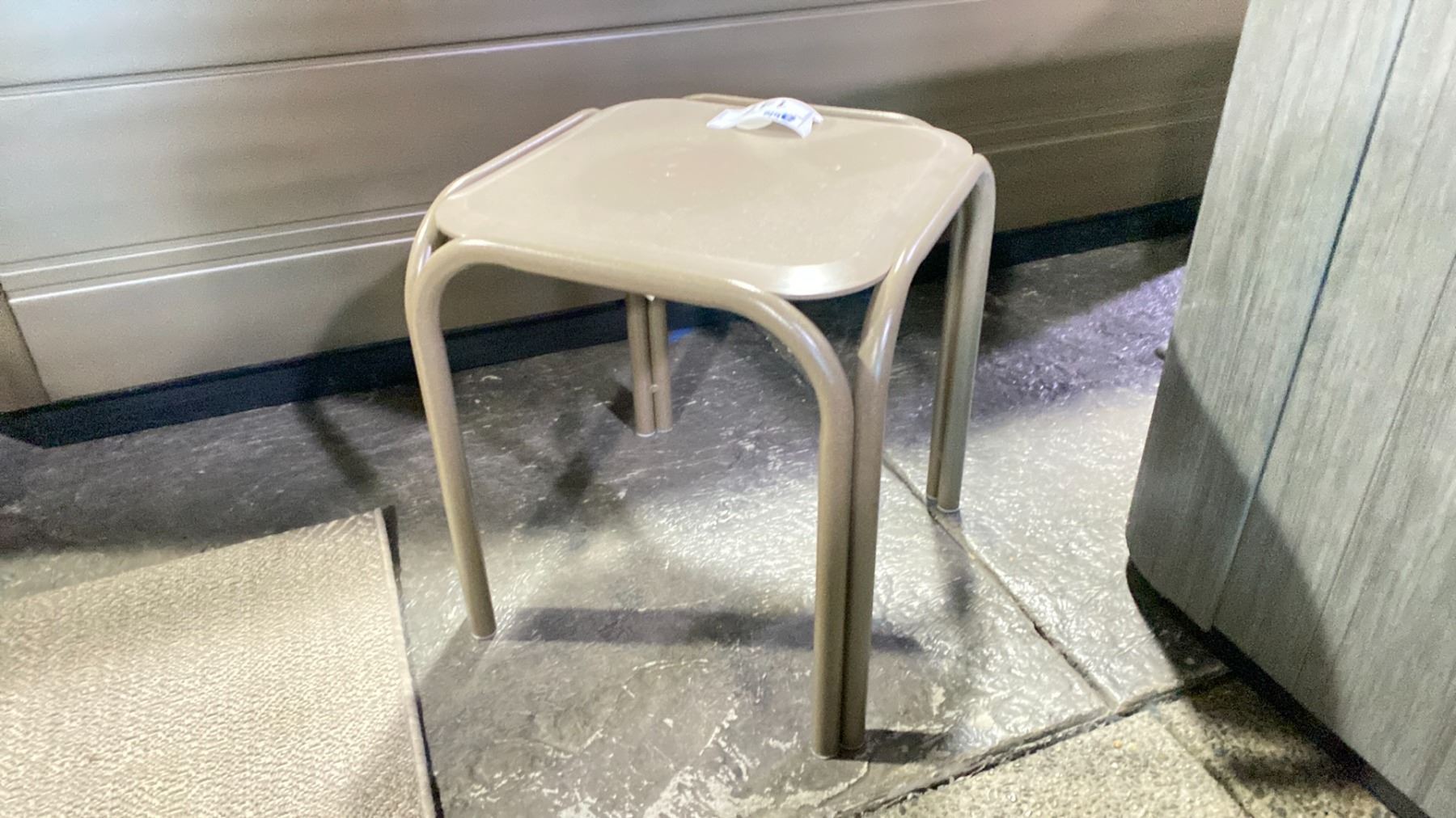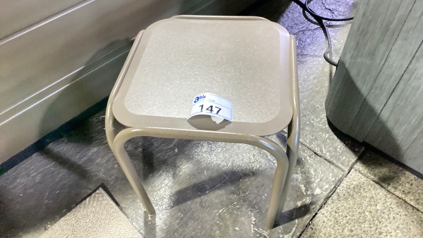 TELESCOPE CASUAL 17" SIDE TABLE. BEACHWOOD COLOR. MARINE GRADE POLYMER & TEXTURED POWDER COATED ALUMINUM FRAME.