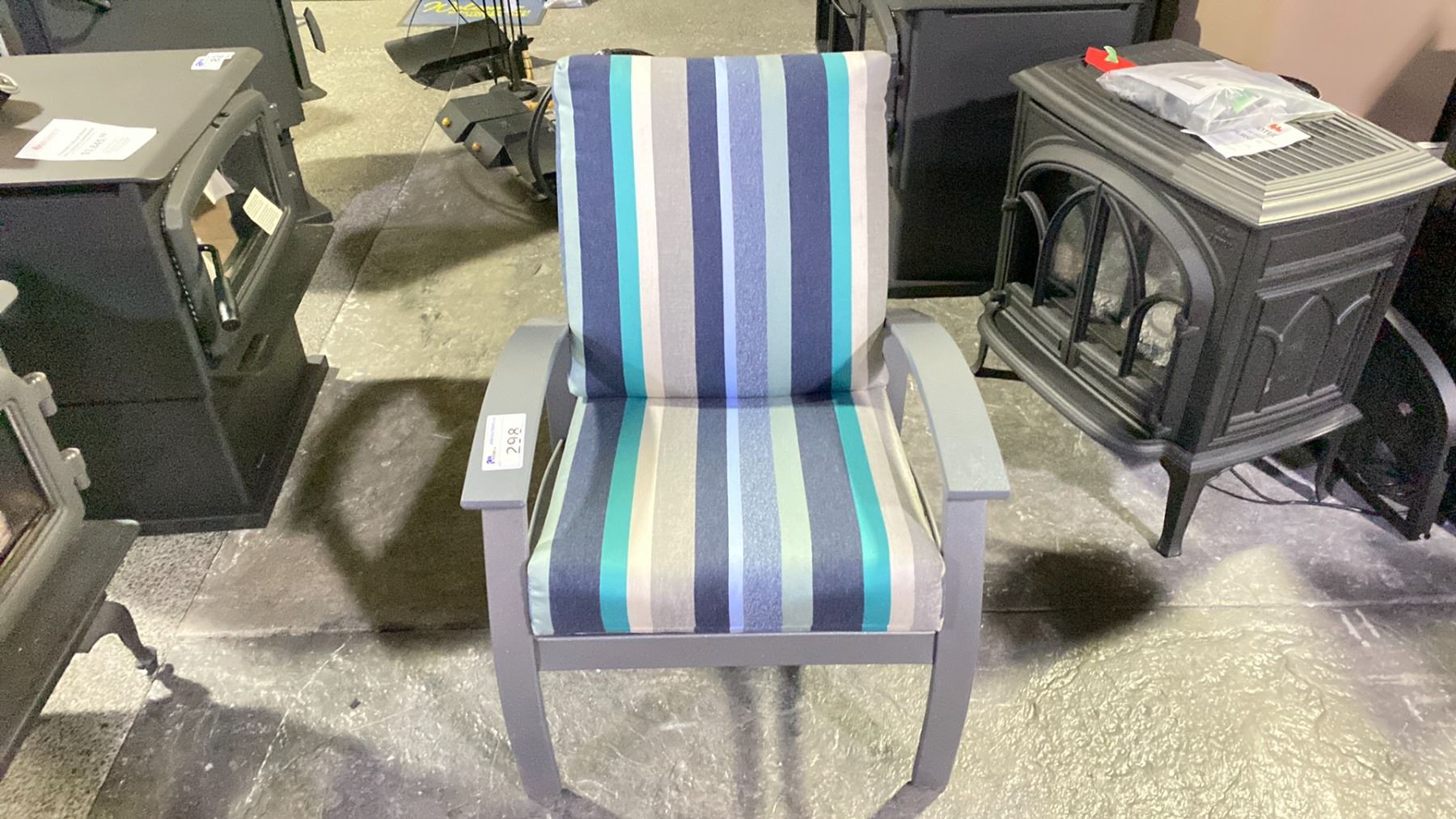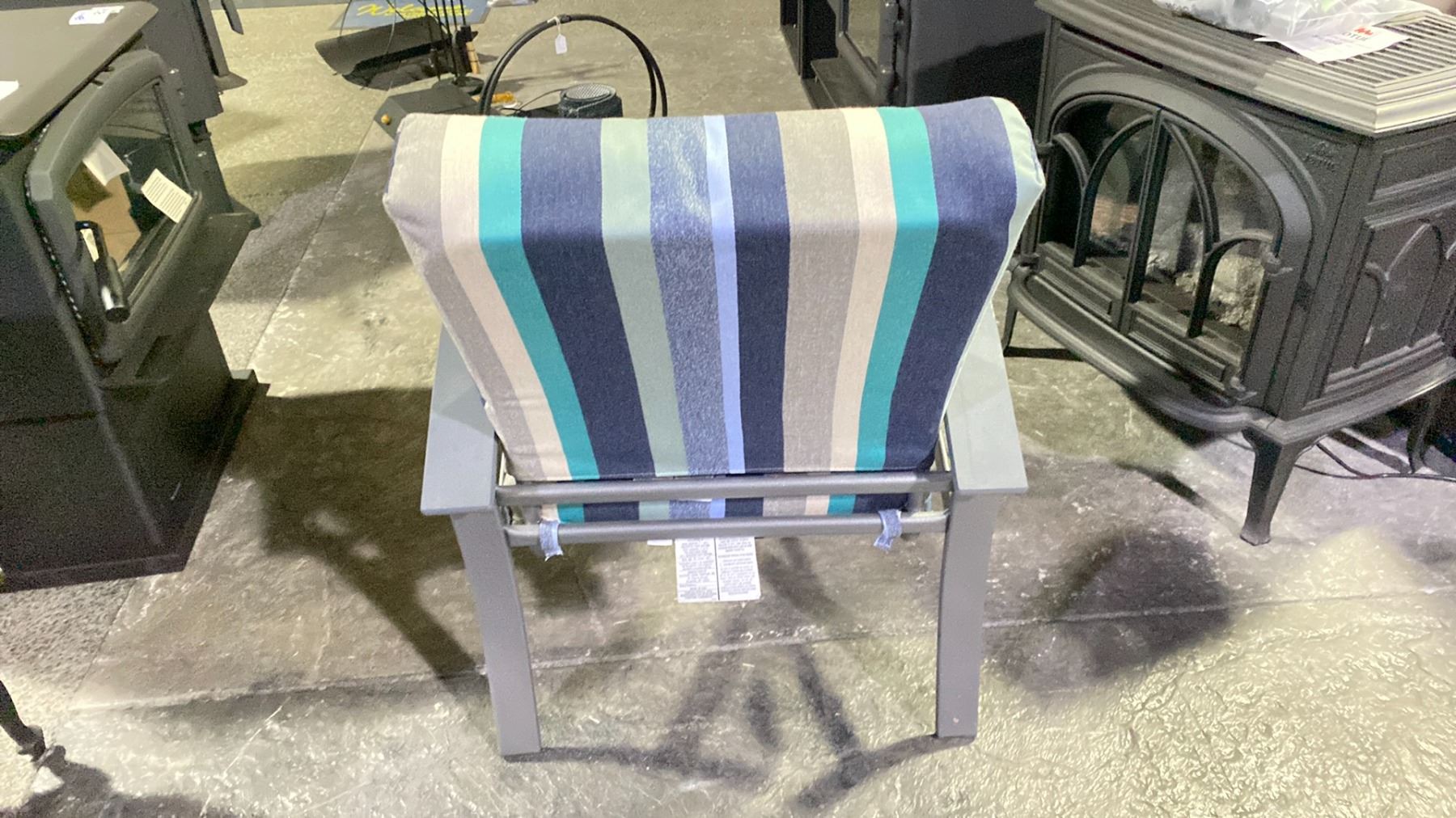 TELESCOPE CASUAL ARM CHAIR. MARINE GRADE POLYMER ARMS TEXTURED POWDER COATED ALUMINUM FRAME. COLOR AS SHOWN RETAIL $1249