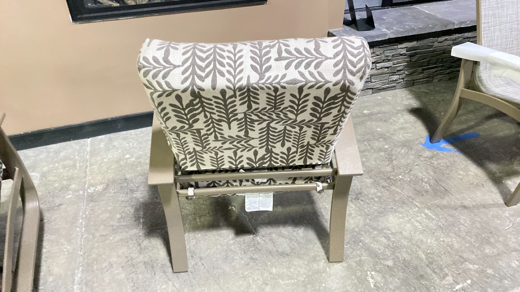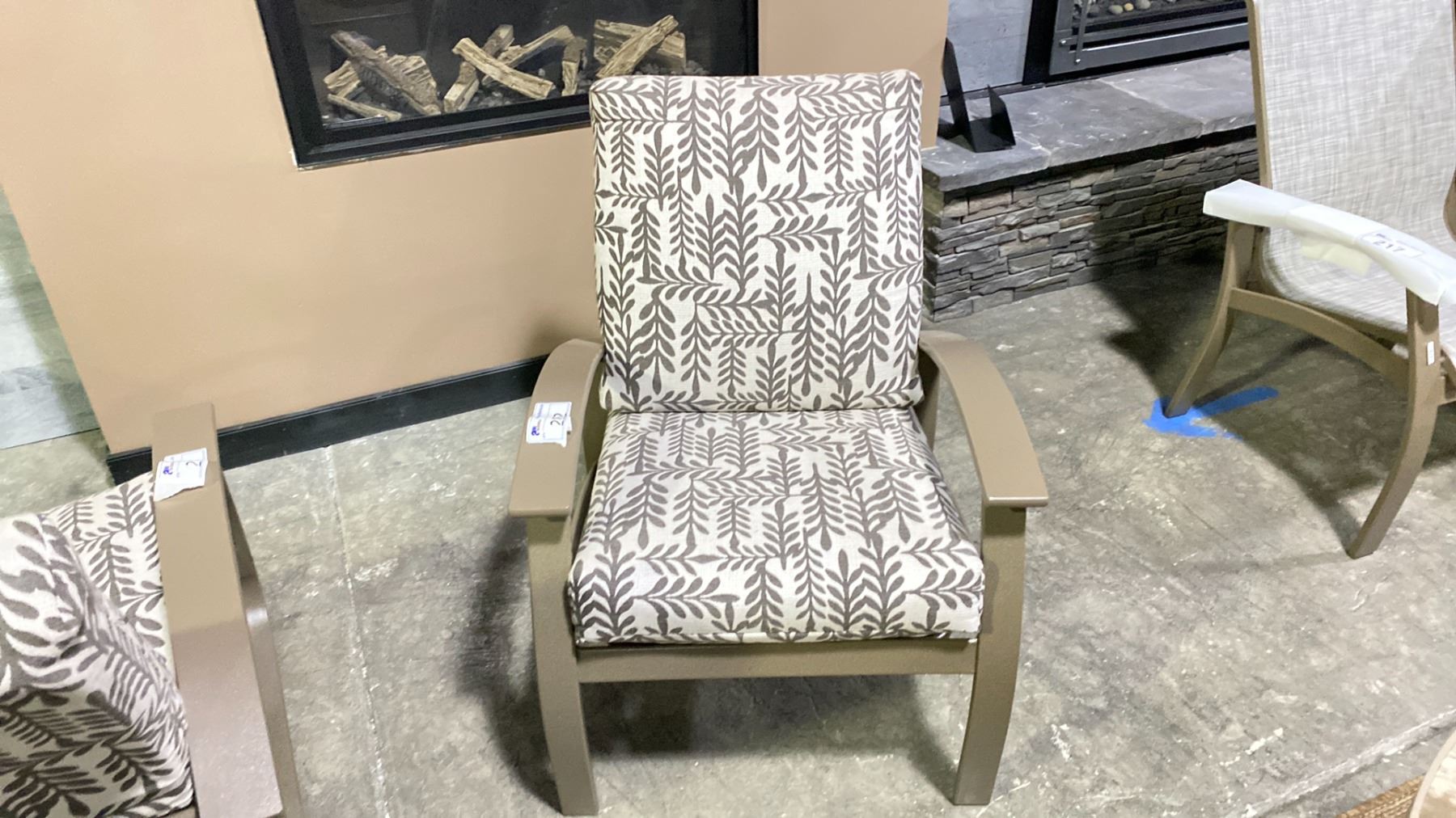TELESCOPE CASUAL BELLE ISLE CUSHION ARM CHAIR COLOR CLIMBING VINES & BEACHWOOD FRAME. MARINE GRADE POLYMER ARMS & TEXTURED POWDER COATED ALUMINUM FRAME, RETAIL $1,239