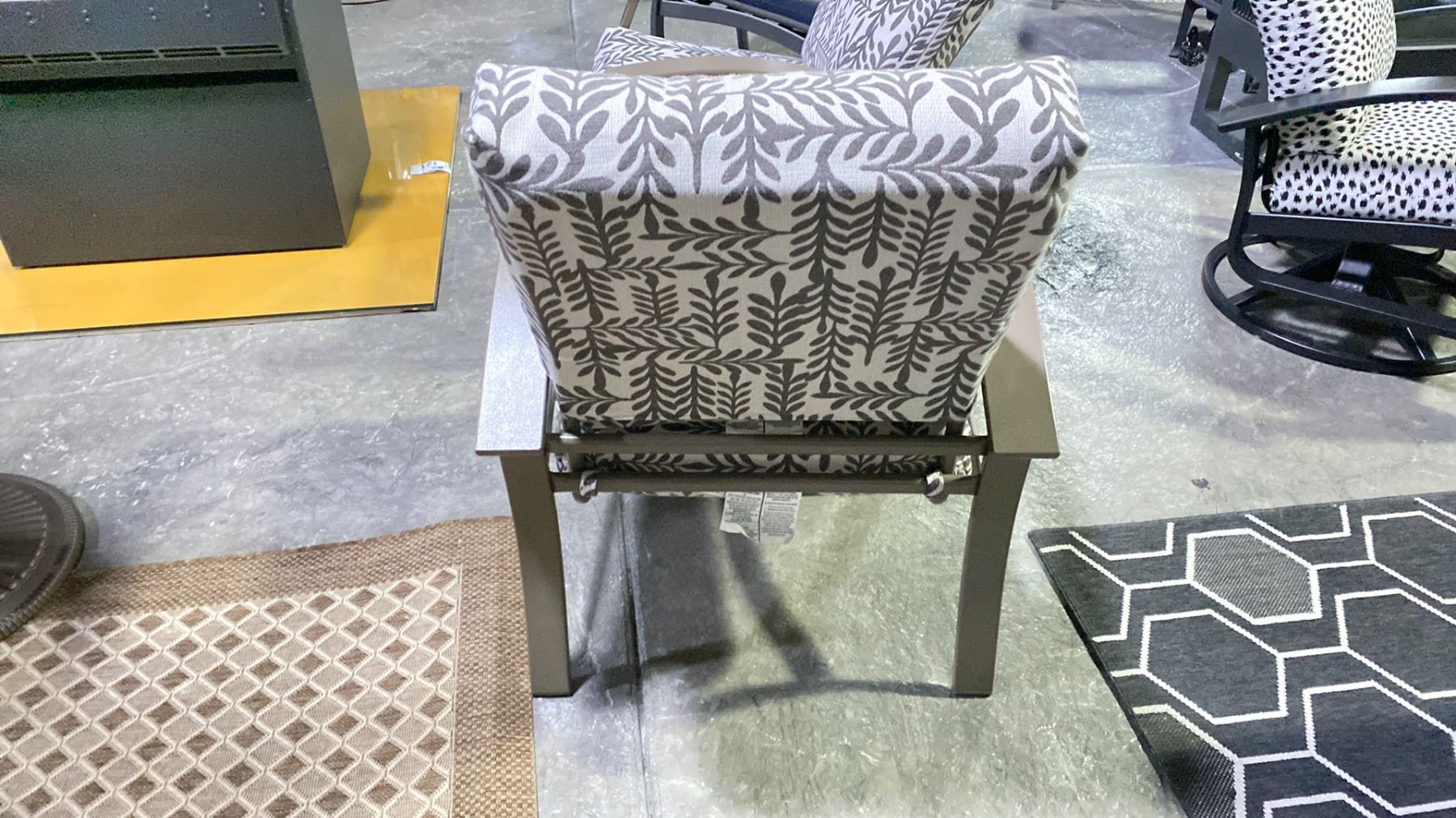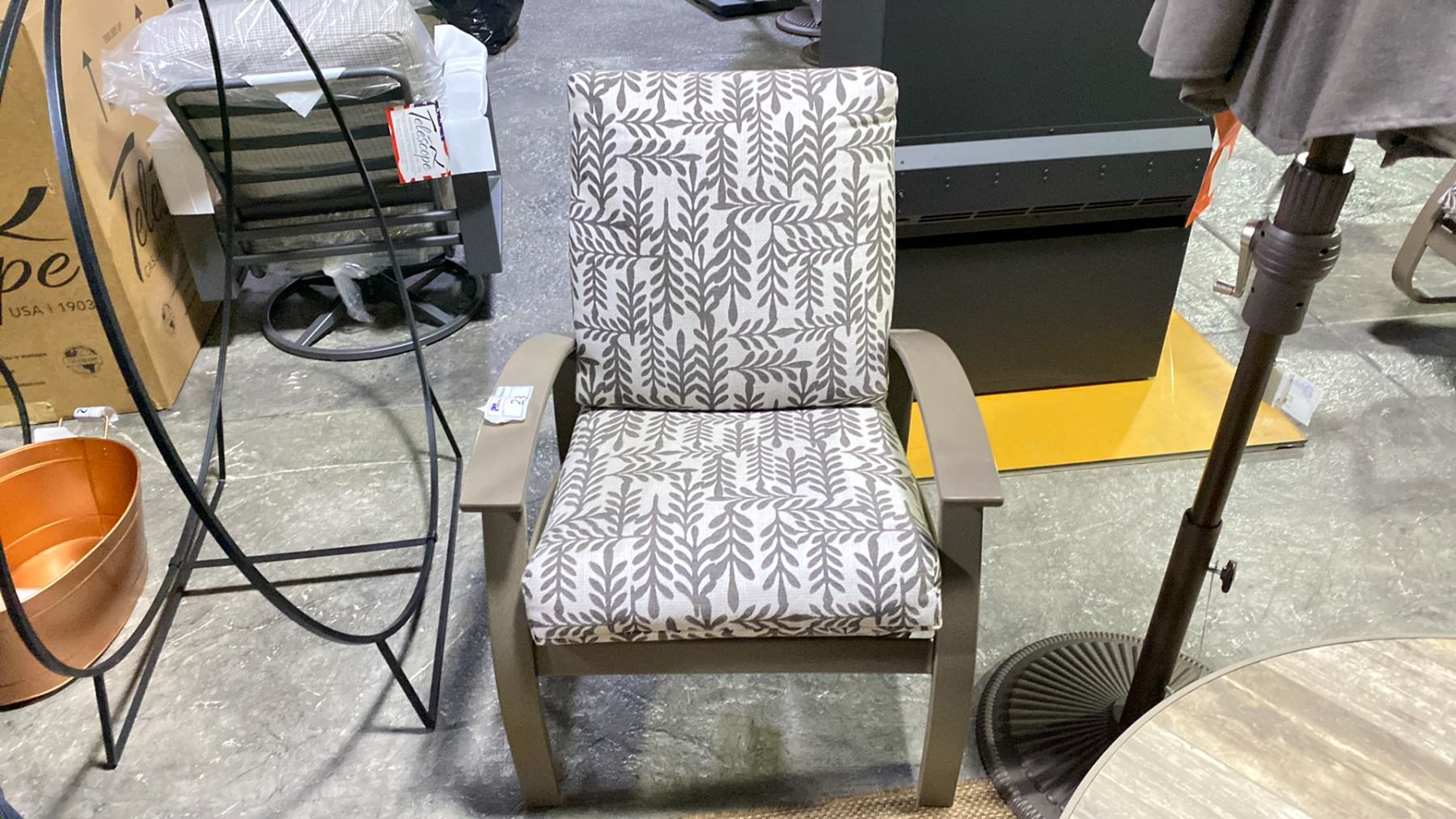 TELESCOPE CASUAL BELLE ISLE CUSHION ARM CHAIR COLOR CLIMBING VINES & BEACHWOOD FRAME. MARINE GRADE POLYMER ARMS & TEXTURED POWDER COATED ALUMINUM FRAME, RETAIL $1,239