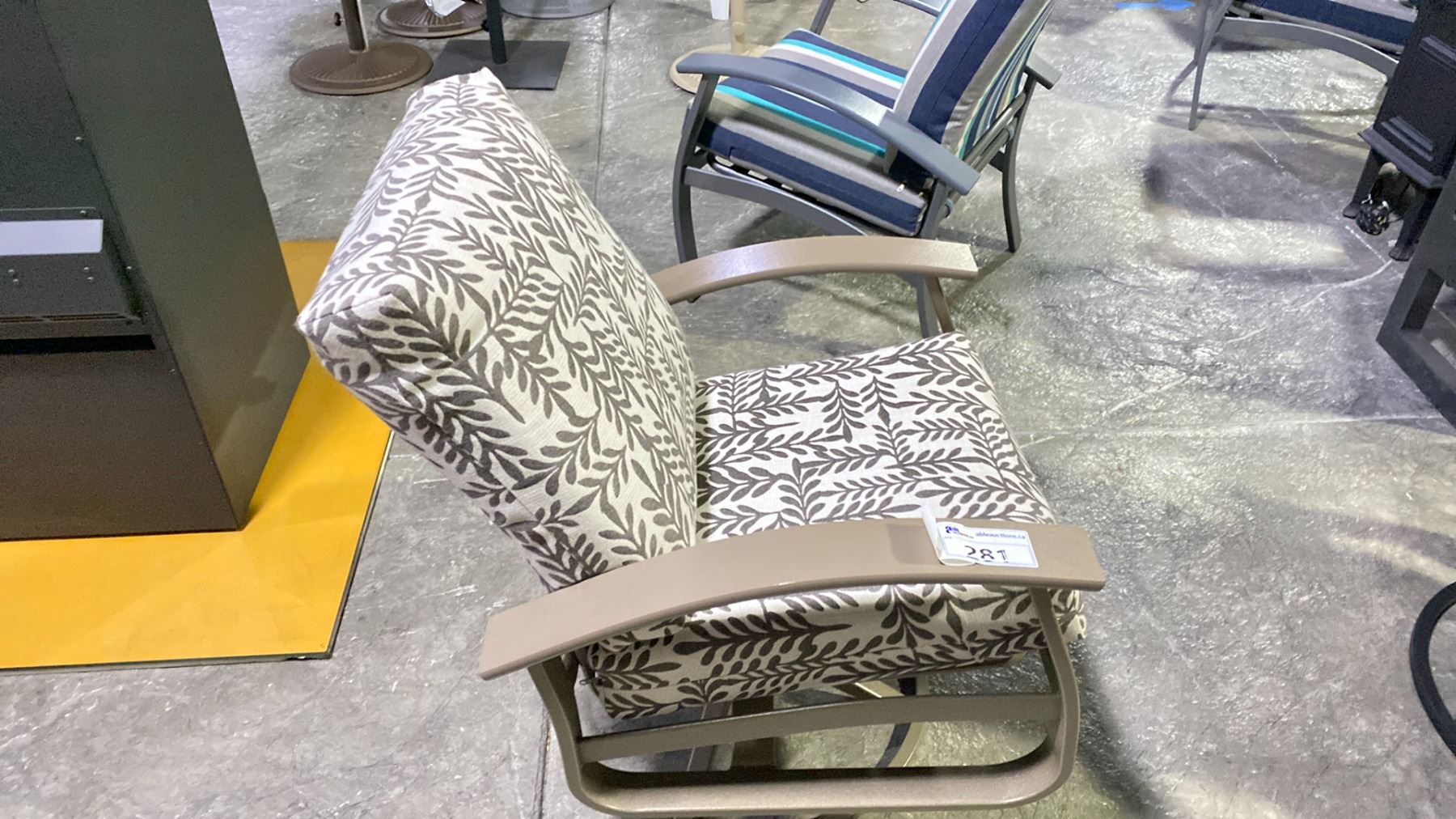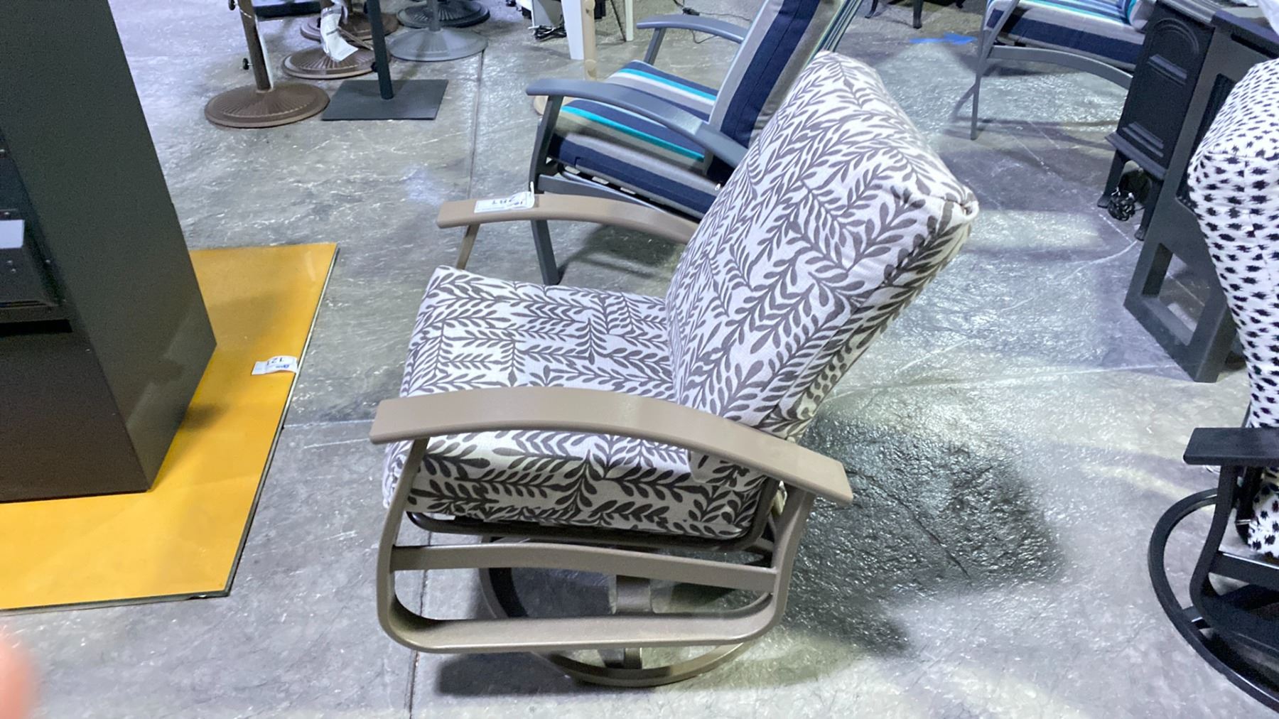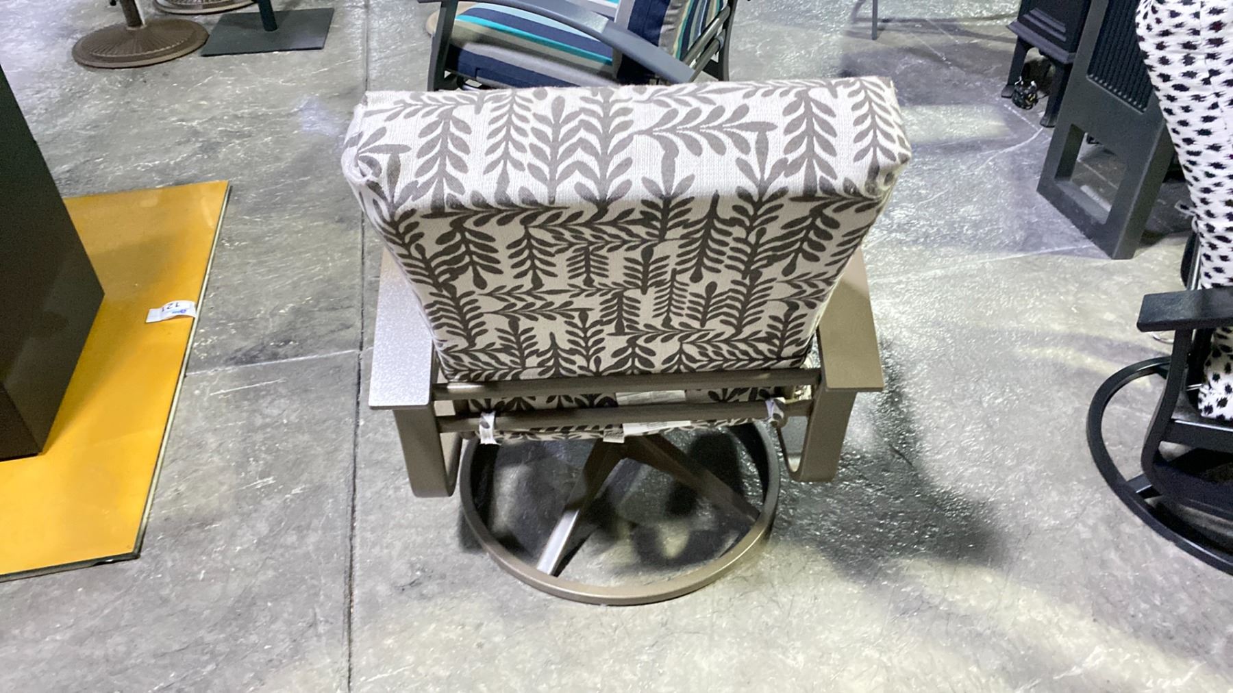 TELESCOPE CASUAL BELLE ISLE CUSHION SWIVEL ROCKER. COLOR CLIMBING VINES & BEACHWOOD FRAME. MARINE GRADE POLYMER ARMS & TEXTURED POWDER COATED ALUMINUM FRAME RETAIL $1249