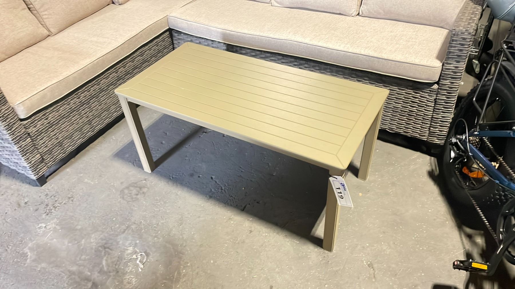 TELESCOPE CASUAL FURNITURE BEIGE 42"L X 21"W X 20"H COMPOSITE OUTDOOR PATIO COCKTAIL TABLE