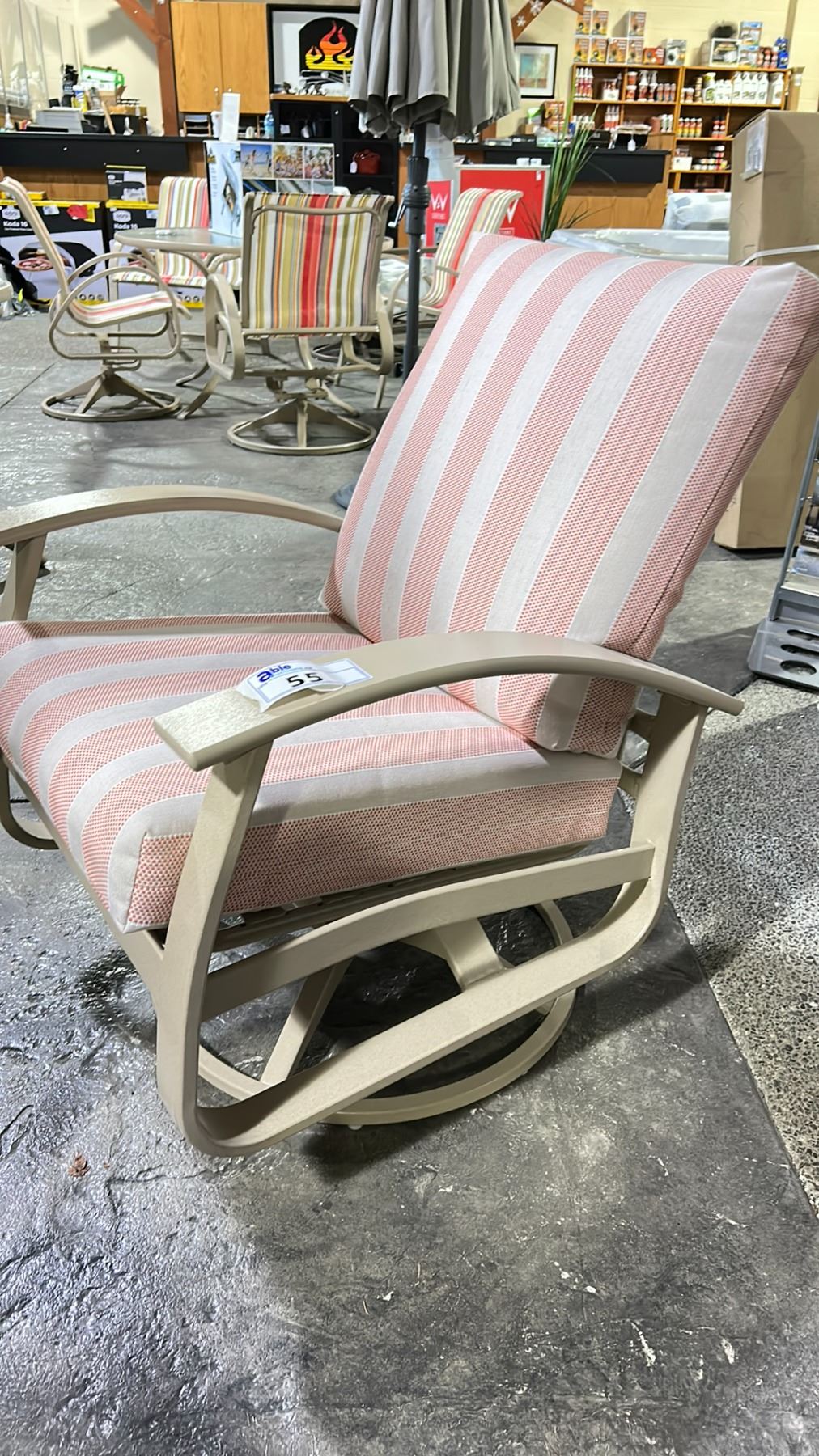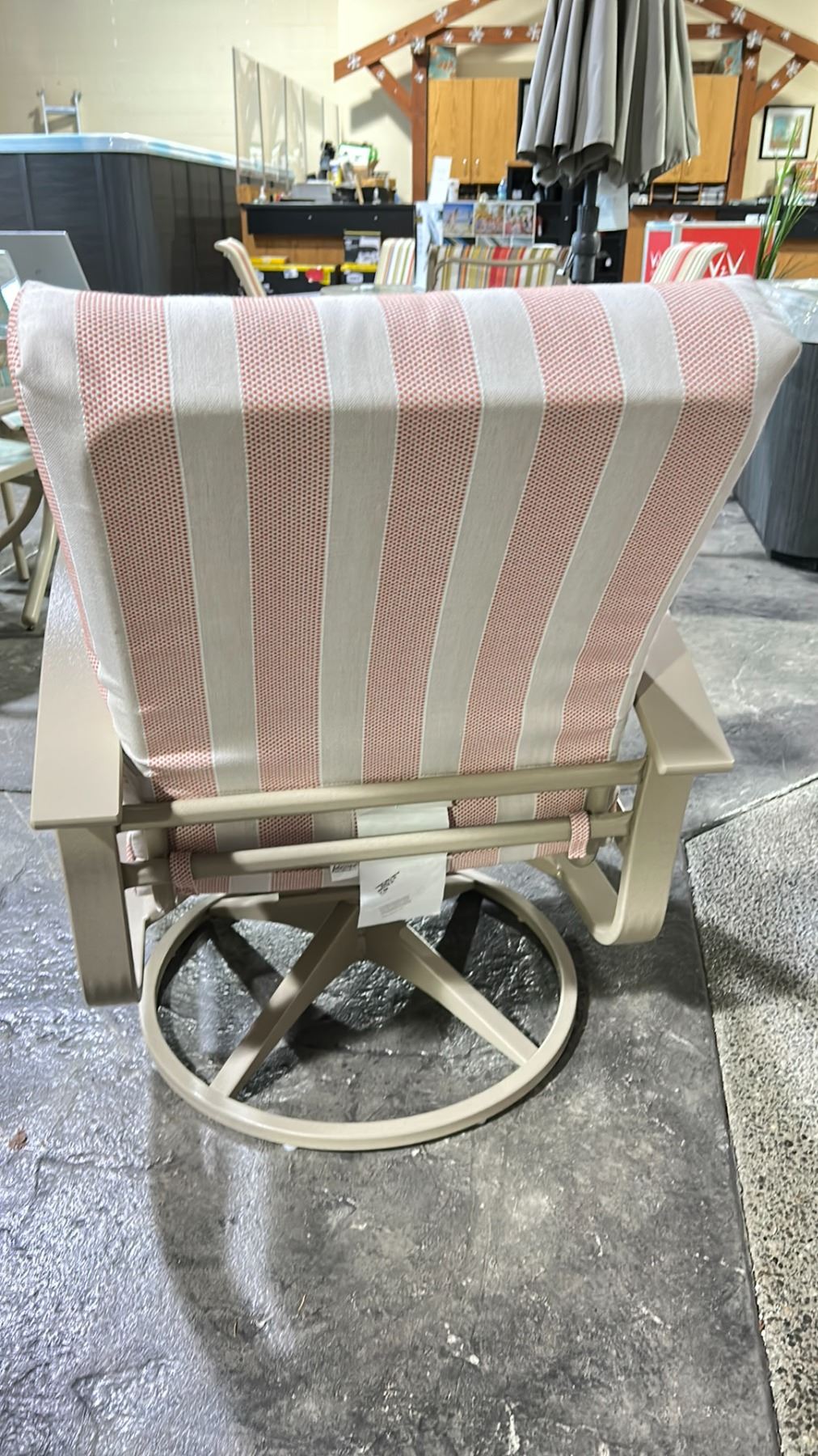 TELESCOPE CASUAL FURNITURE BELLE ISLE CUSHION SWIVEL ROCKER. MARINE GRADE POLYMER ARMS AND TEXTURED POWDER COATED ALUMINUM FRAME. $1900 ON WAYFAIR