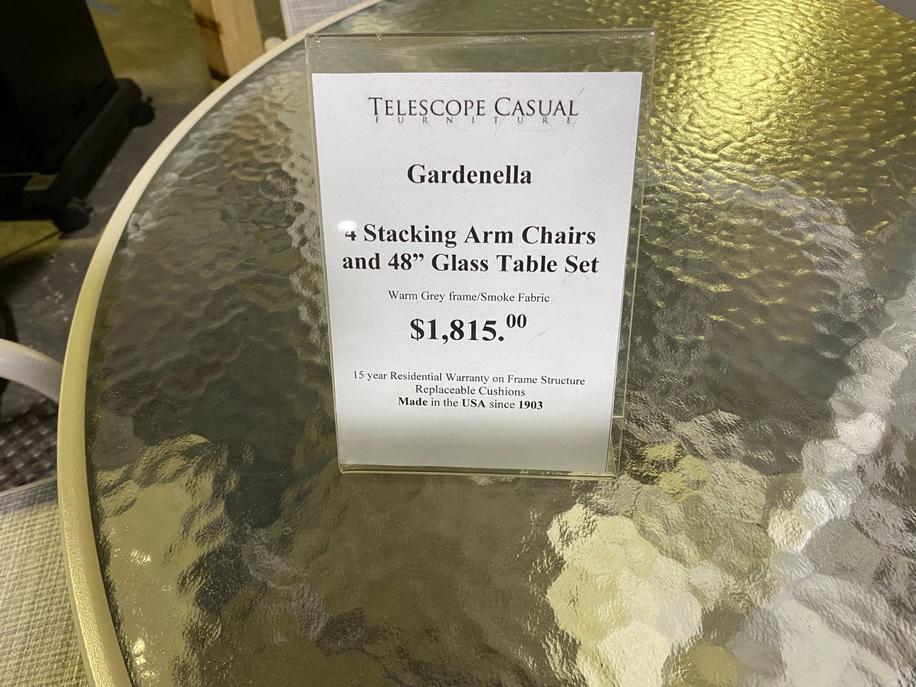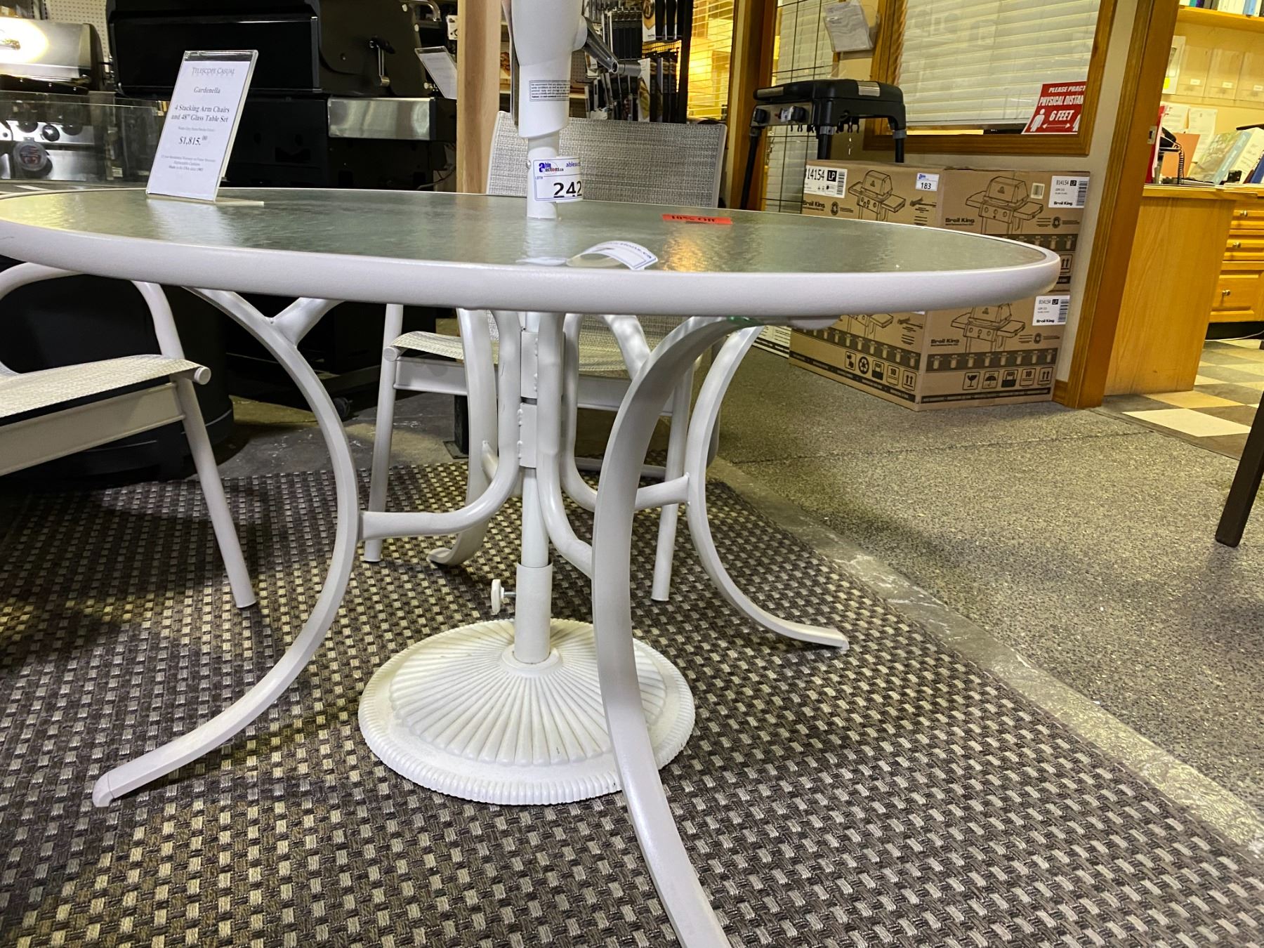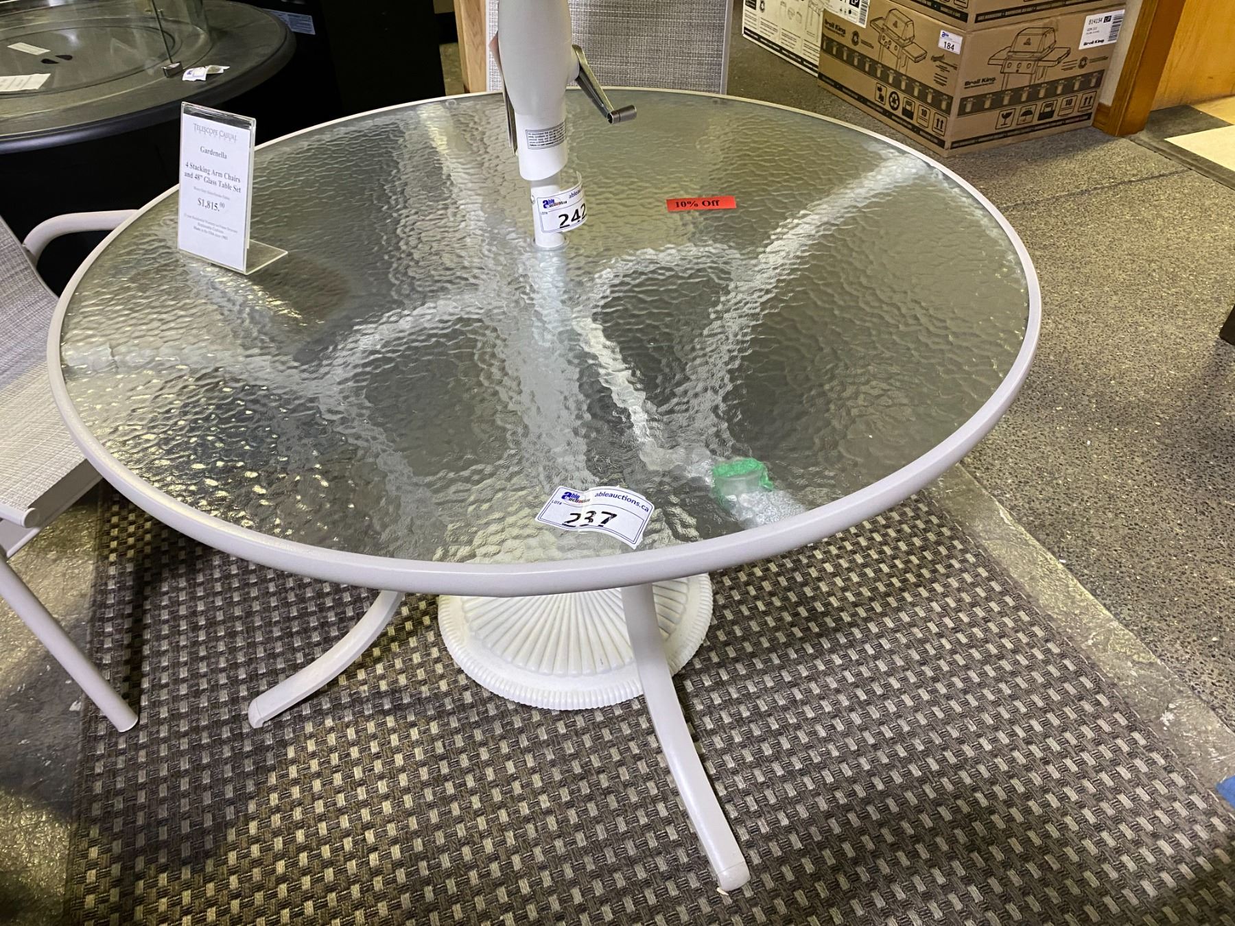 TELESCOPE CASUAL GARDENELLA 48" GLASS TOP TABLE. POWDER COATED ALUMINUM FRAME