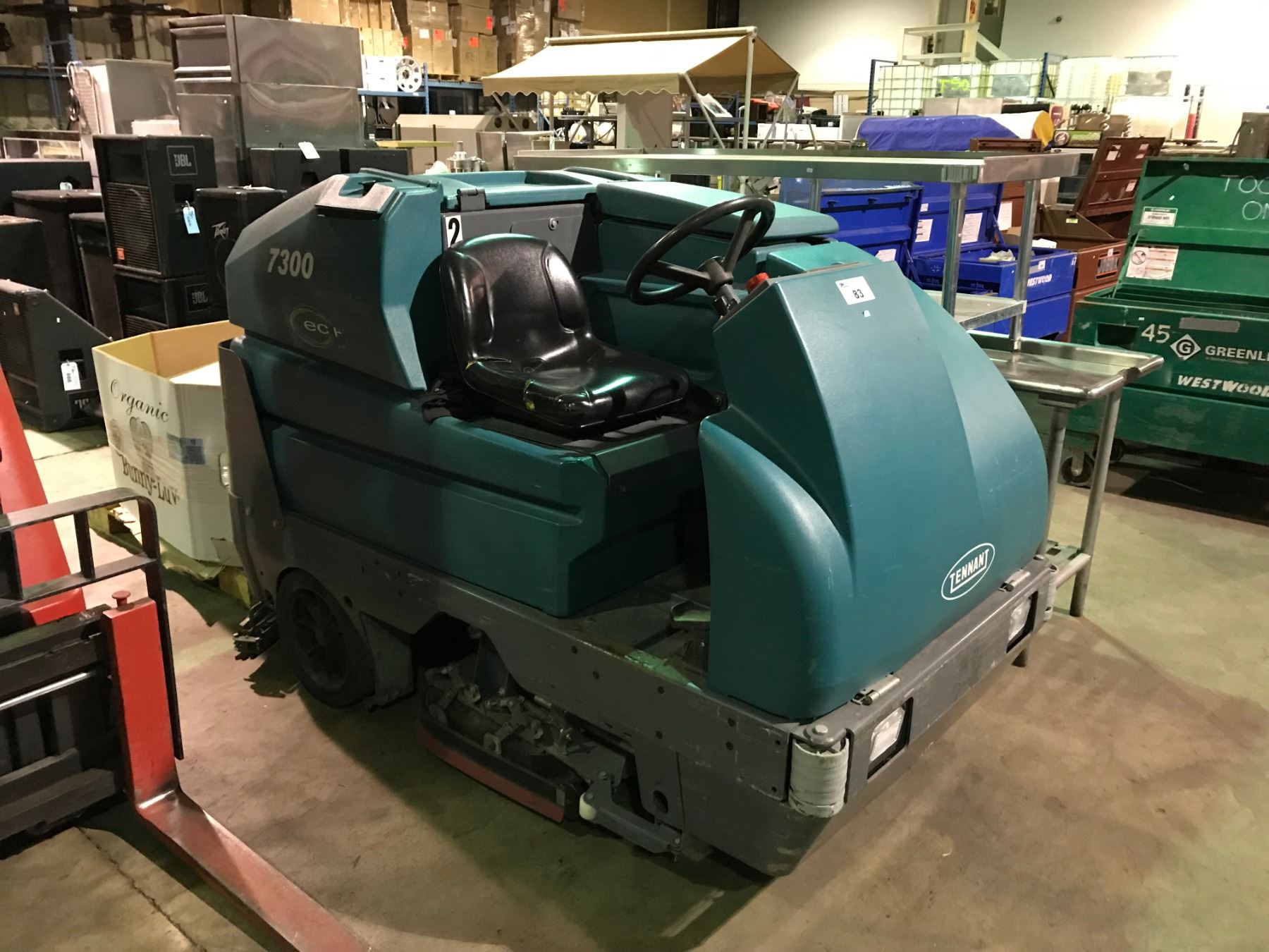 TENNANT 7300 EC H2O ELECTRIC RIDE ON FLOOR SWEEPER WITH PALLET OF ASSORTED BRUSHES & DISCS