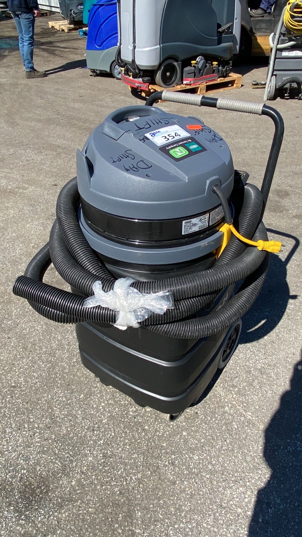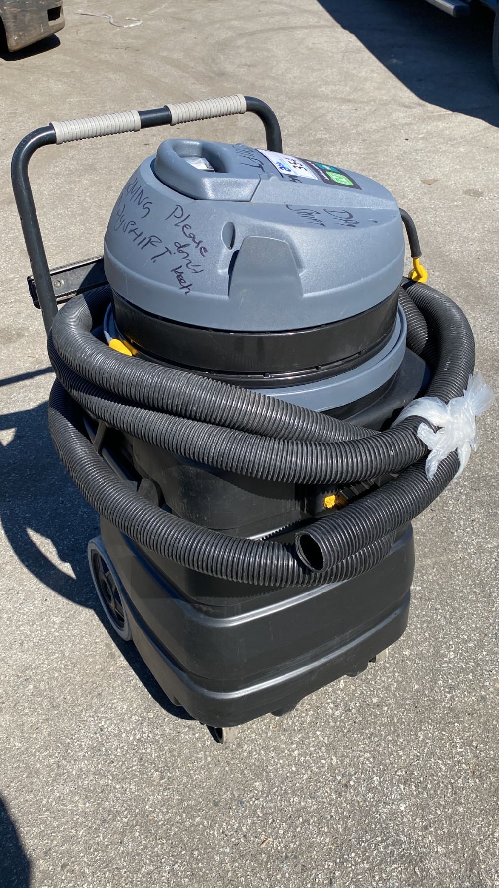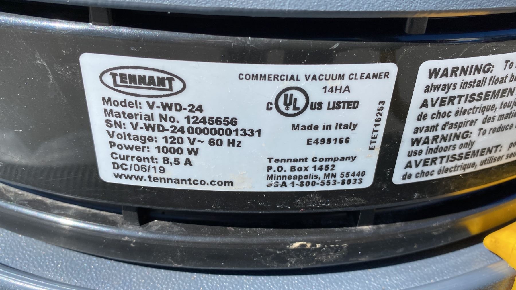 TENNANT V-WD-24 COMMERCIAL ELECTRIC WALK BEHIND JANITORIAL VACUUM *HAS WAND, HAS HOSE*