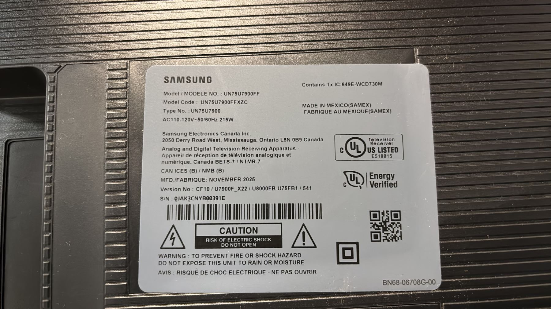 *TESED WORKING* SAMSUNG 75" TV WITH POWER CORD, STAND & REMOTE