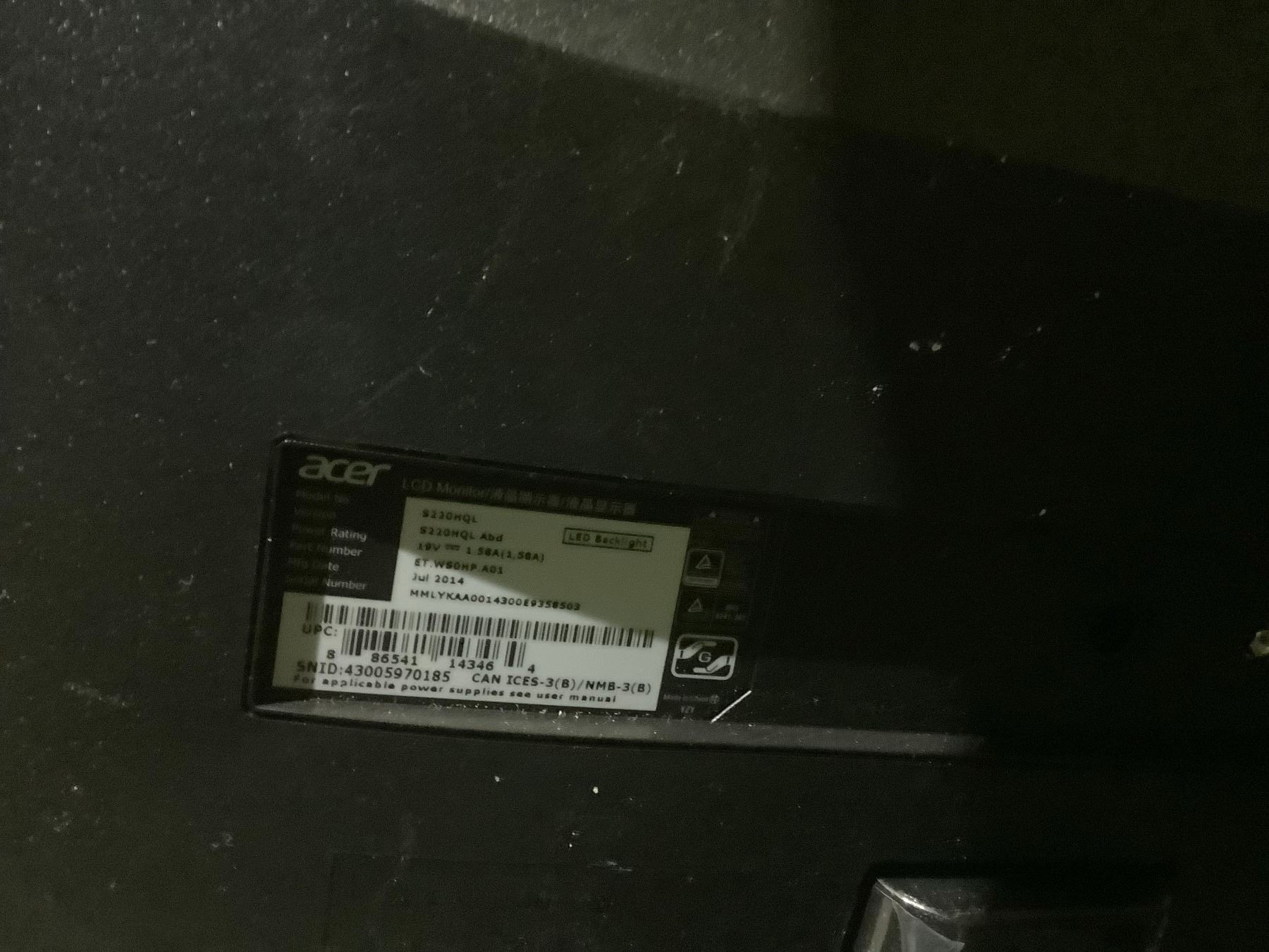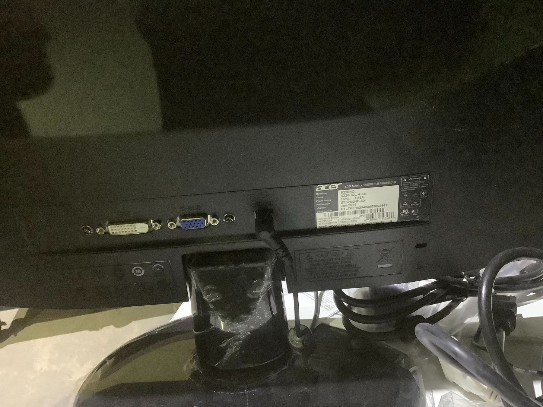 *TESTED WORKING* 2 ACER 21.5" LCD MONITORS (ONLY 1 POWER CORD) WITH BOXES