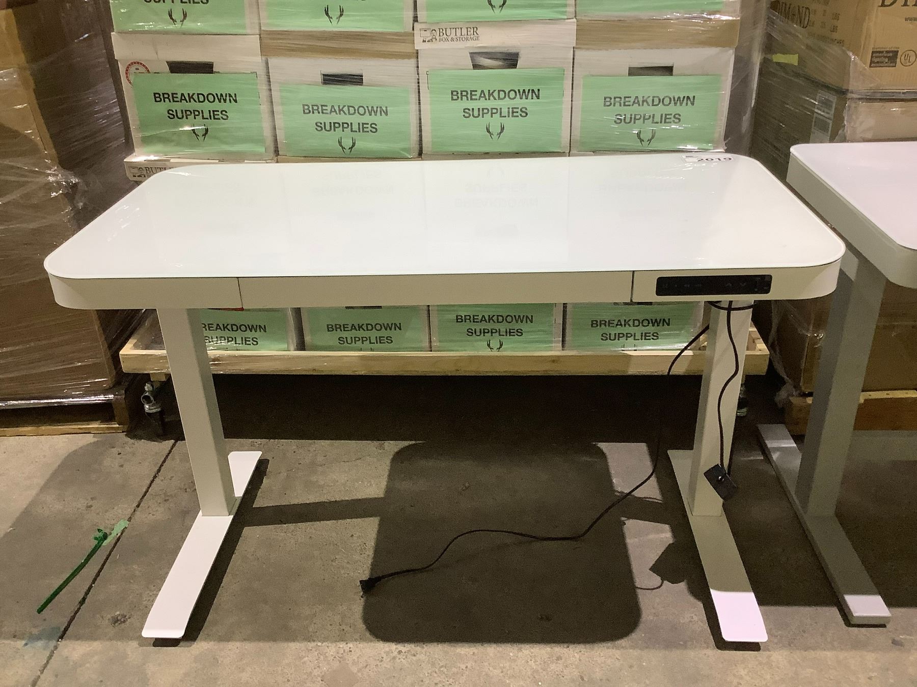*TESTED WORKING* AIRLIFT GLASS TOP ELECTRIC HEIGHT ADJUSTABLE DESK WITH USB PORTS, STORAGE TRAY & POWER CORD
