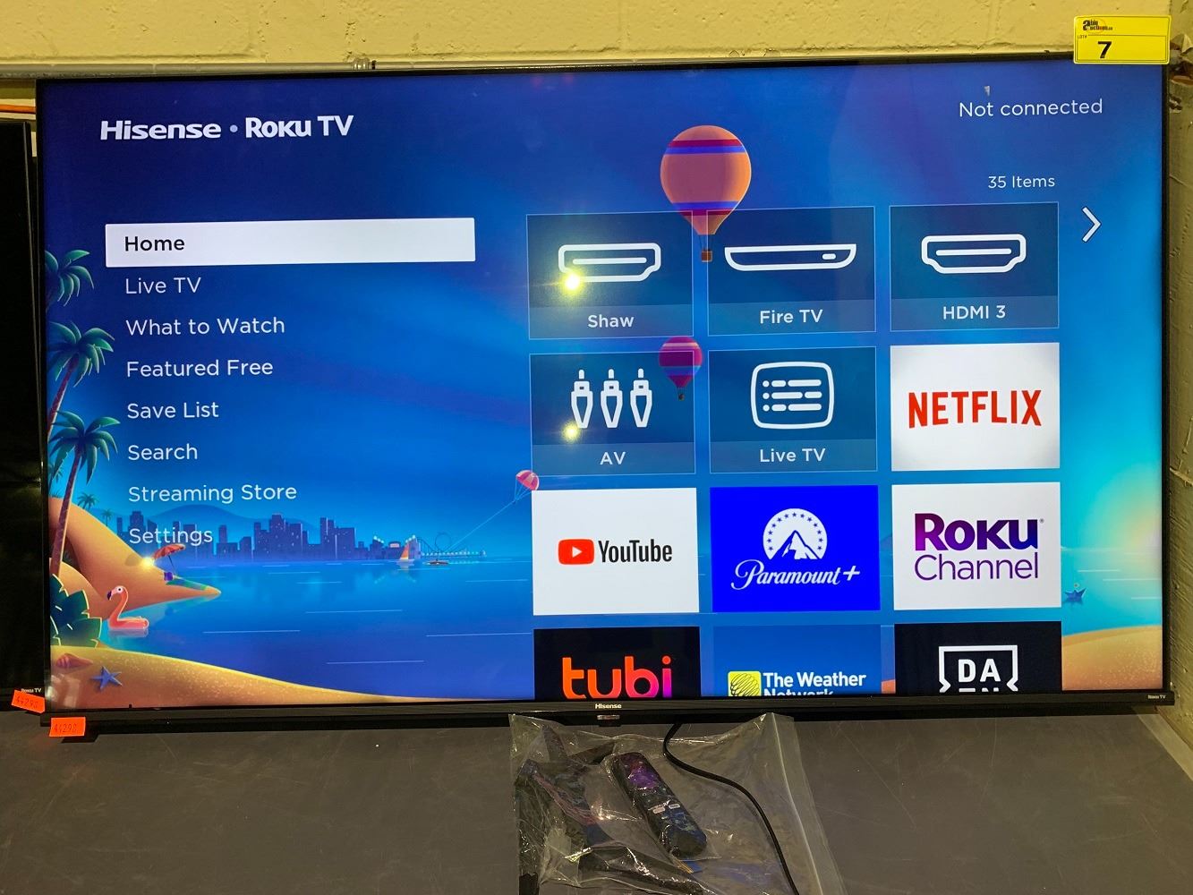 *TESTED WORKING* HISENSE ROKU 55" TV WITH POWER CORD, REMOTE & STAND