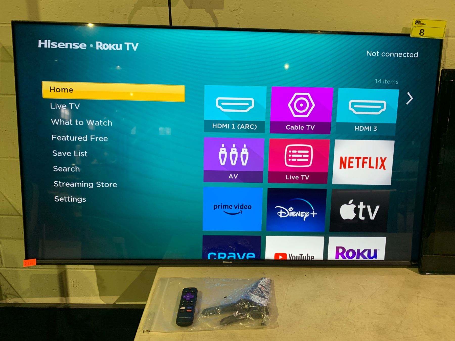 *TESTED WORKING* HISENSE ROKU 55" TV WITH POWER CORD, REMOTE & STAND