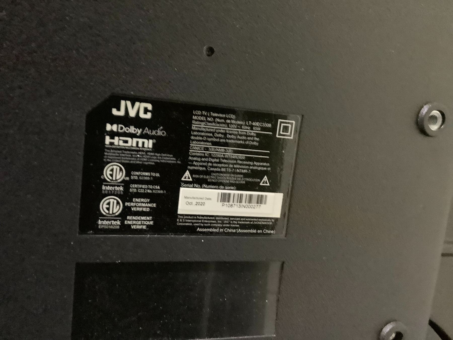 *TESTED WORKING* JVC 40" TV WITH POWER CORD & REMOTE (NO STAND)