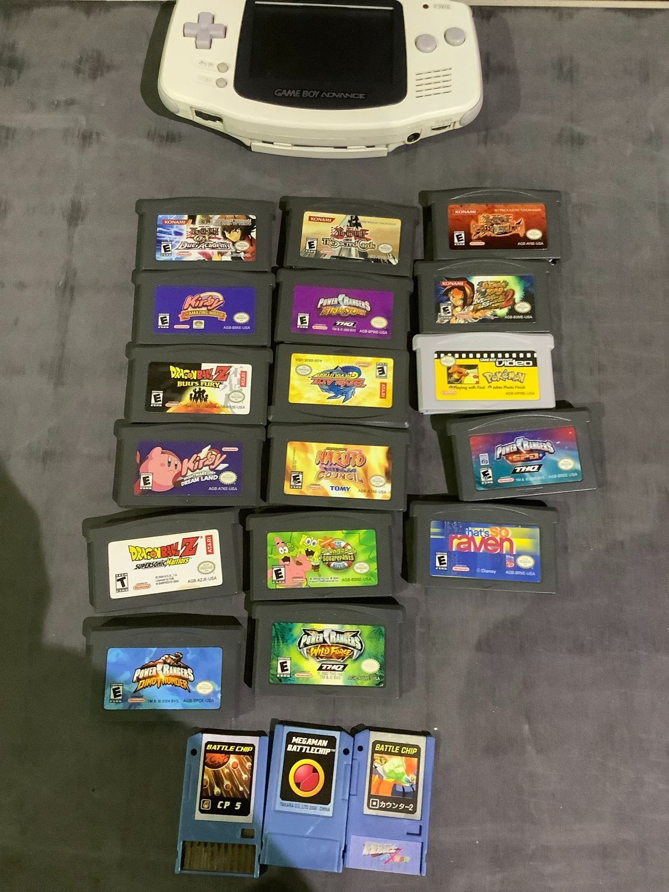 *TESTED WORKING* NINTENDO GAMEBOY ADVANCE WITH ASSORTED GAMES INCLUDING; BEYBLADE REVOLUTION, KIRBY NIGHTMARE IN DREAMLAND, DRAGONBALL Z SUPERSONIC WARRIORS & MORE
