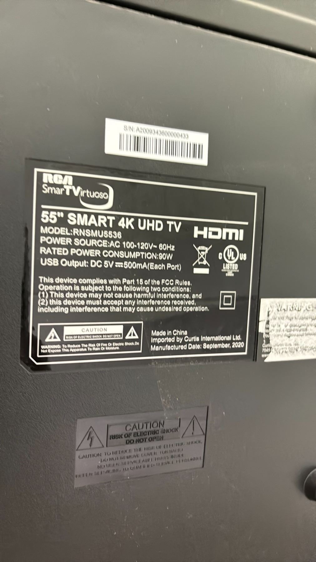 *TESTED WORKING* RCA 55" SMART TV WITH POWER CORD AND STAND *NO REMOTE*