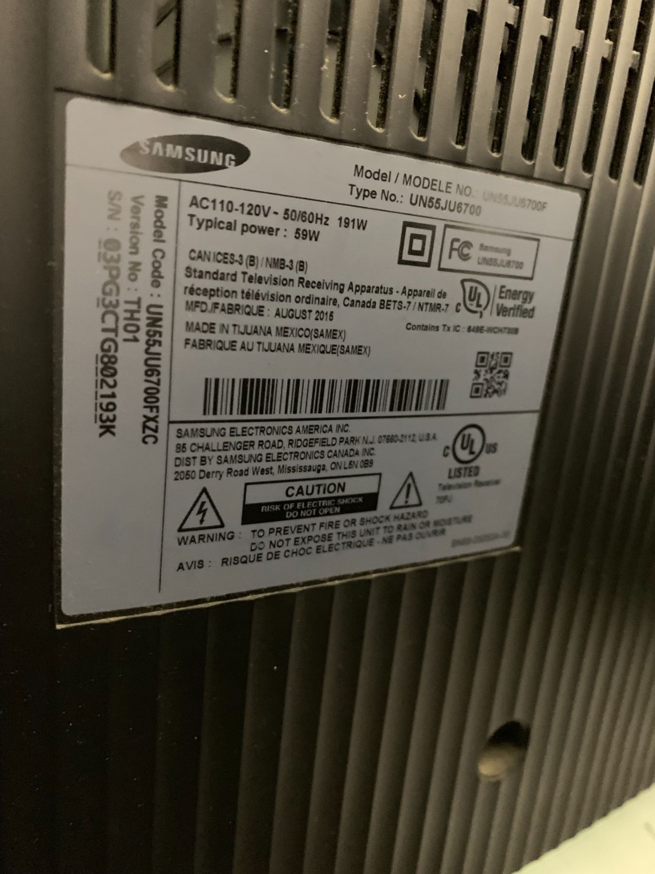 *TESTED WORKING* SAMSUNG 55" CURVED TV WITH POWER CORD & STAND (NO REMOTE)