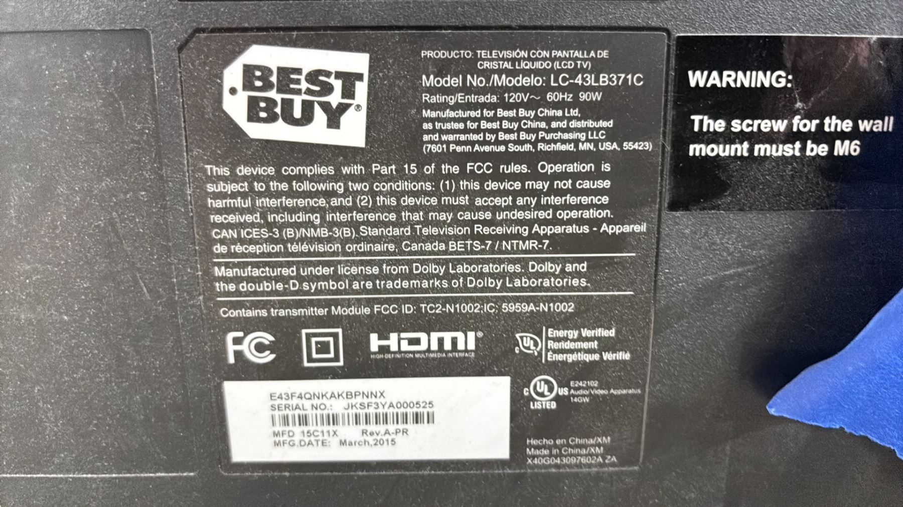 *TESTED WORKING* SHARP ROKU 42" TV WITH REMOTE & POWER CORD (NO STAND, NO MOUNT)