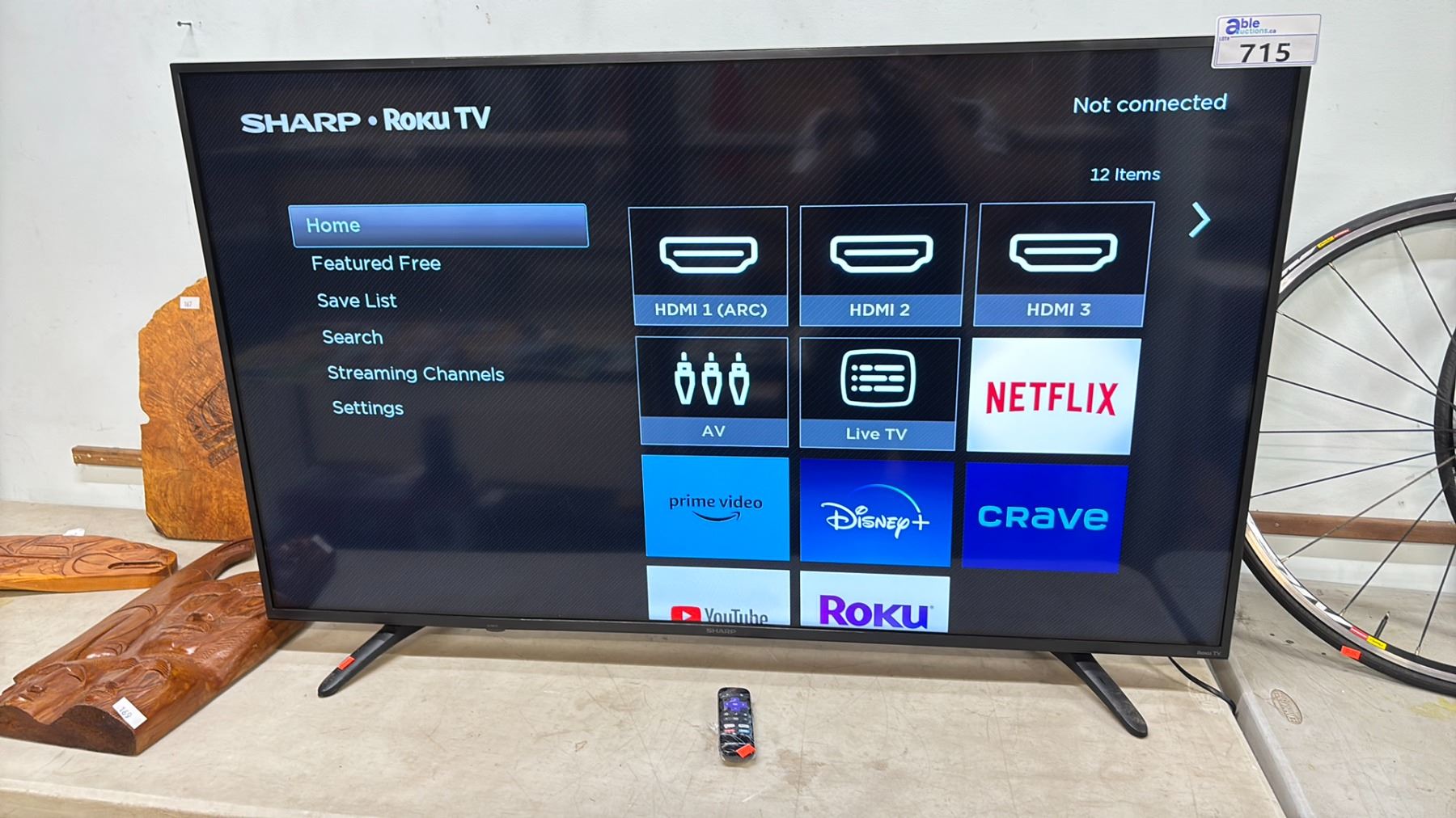 *TESTED WORKING* SHARP ROKU 55" TV WITH POWER CORD, STAND & REMOTE
