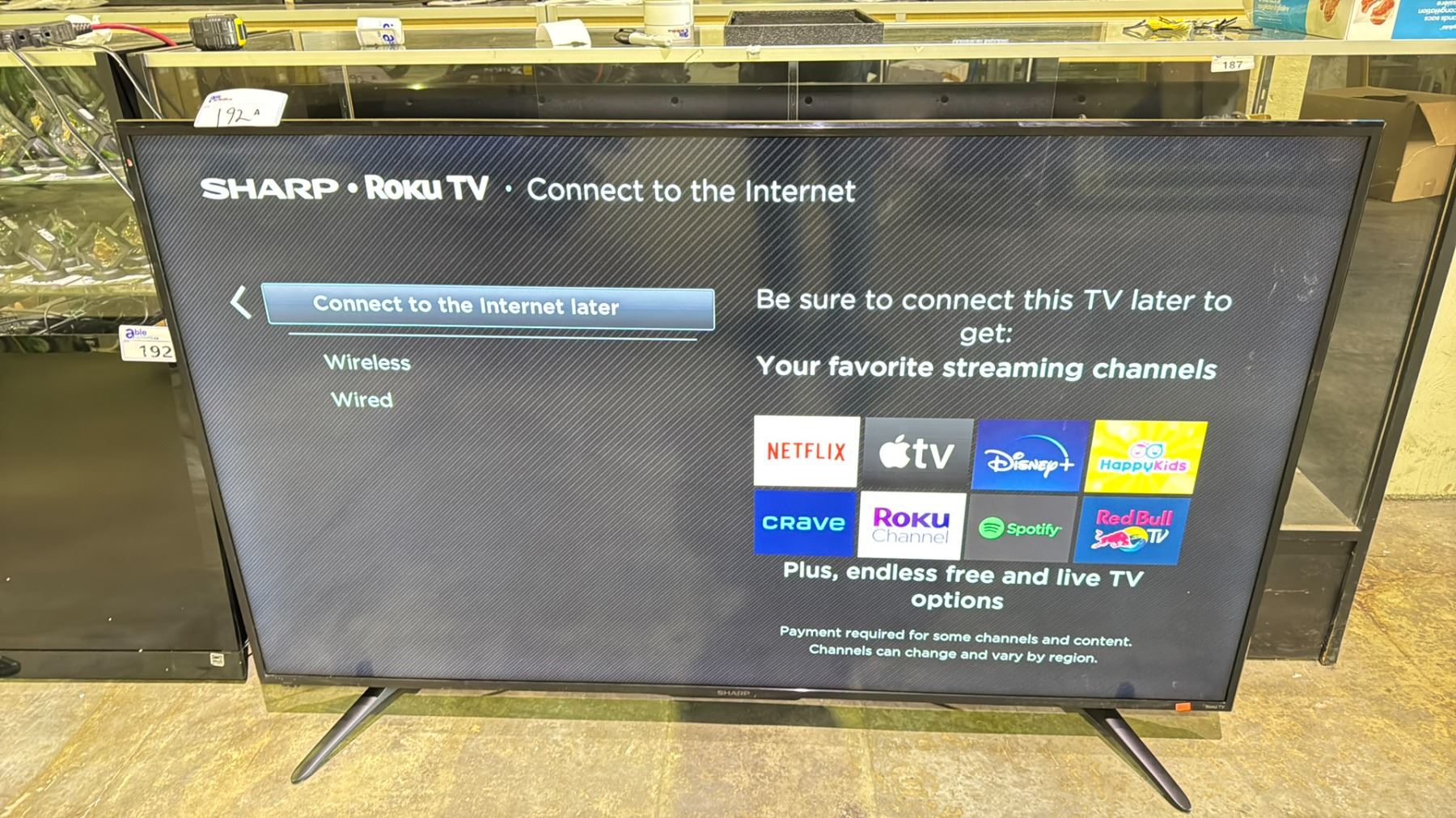 TESTED WORKING SHARP ROKU 65" TV ON STAND WITH REMOTE