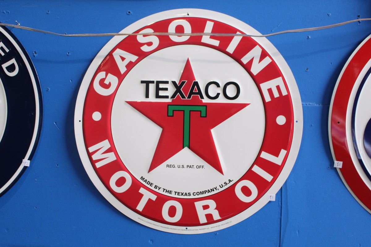 TEXACO GASOLINE MOTOR OIL TIN SIGN