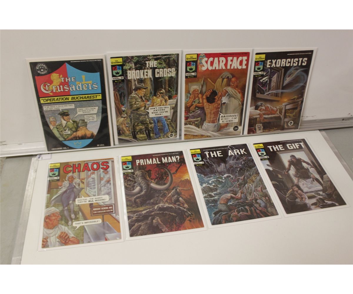 THE CRUSADERS #1-15 (1974-83) HARDCORE RELIGIOUS,INDEPENDENT COMIC, LOW PRINT. MID TO HIGH GRADE AVERAGE. 2013 OVERSTREET TOP END GUIDE VALUE OF $420.