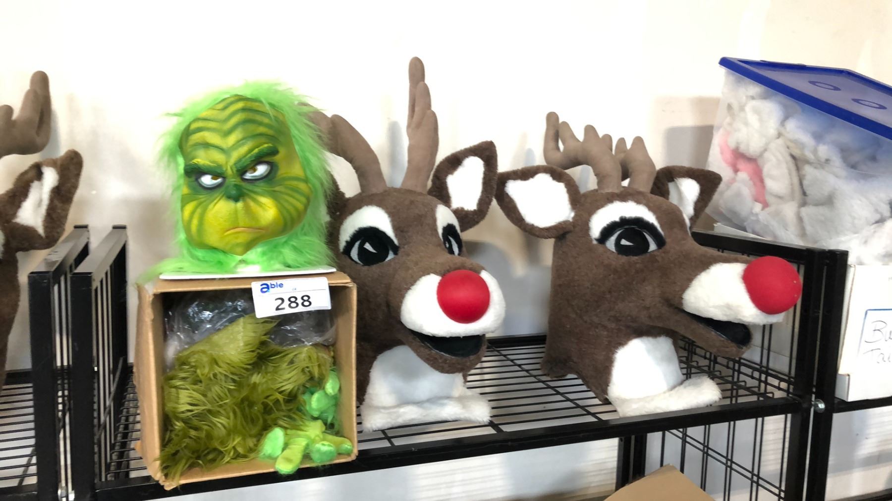 THE GRINCH MASK AND ACCESSORIES WITH 2 REINDEER HEADS