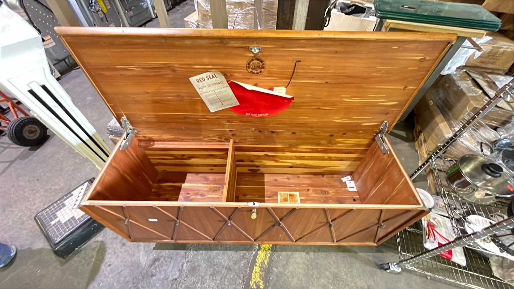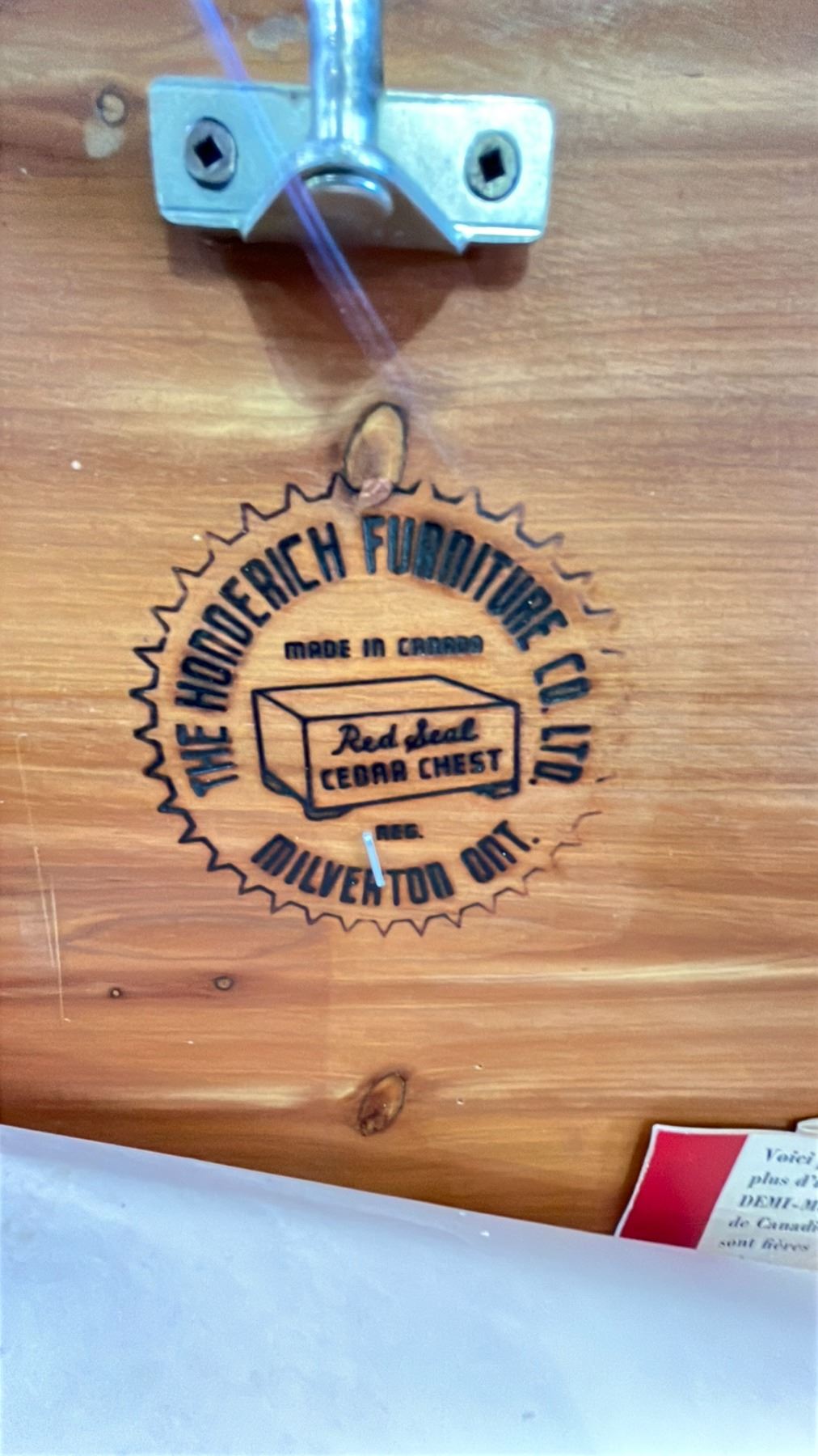 THE HONDERICH FURNITURE READ SEAL CEDAR CHEST ON CASTORS *MADE IN CANADA* - APPROX. 57.5"W X 19.5"D X 25.5"H